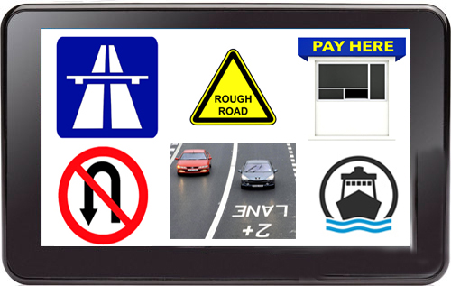 - ON MOTORWAYS & MAJOR JUNCTIONS, AN ADVANCED LANE GUIDANCE SYSTEM SHOWS PHOTO REAL ROAD SIGNS & SHOWS YOU WHICH LANE YOU NEED TO BE IN