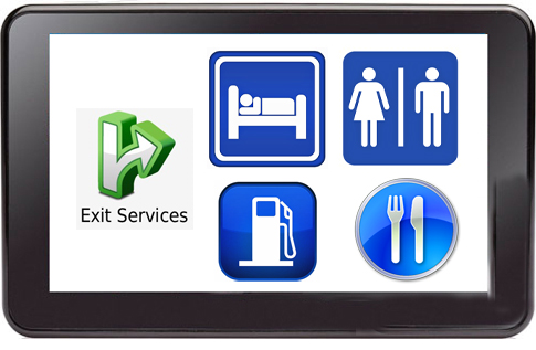 - ALLOWS YOU TO VIEW SERVICES THAT ARE LOCATED AT EXITS ALONG MOTORWAYS, SUCH AS FUEL, FOOD, LODGINGS & REST AREAS