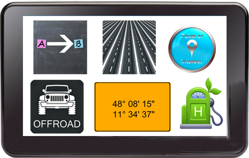 - SELECT YOUR ROUTE USING FASTEST, SHORTEST, POI, LESS FUEL, OFF ROAD & GPS CO-ORDINATES.