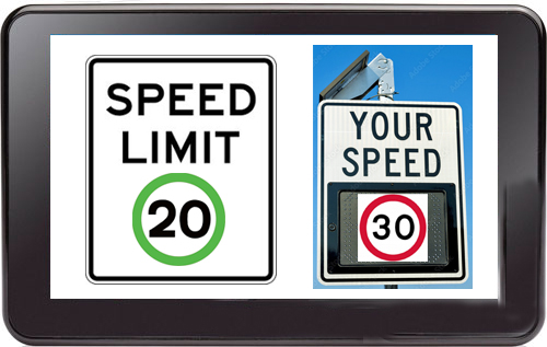 - A HUMAN VOICE ALERTS YOU OF SPEED TRAP AREAS STATING THE SET LIMIT, 30, 40, 50 ETC