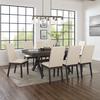 The Hayden 9-Piece Dining Set brings rustic elegance to family gatherings. Featuring X-shaped legs and a trestle base, the farmhouse dinner table pairs beautifully with the Parsons style kitchen chairs. The extendable table's 18” leaf offers space for eight diners, making this dining set a timeless centerpiece for your dining room.