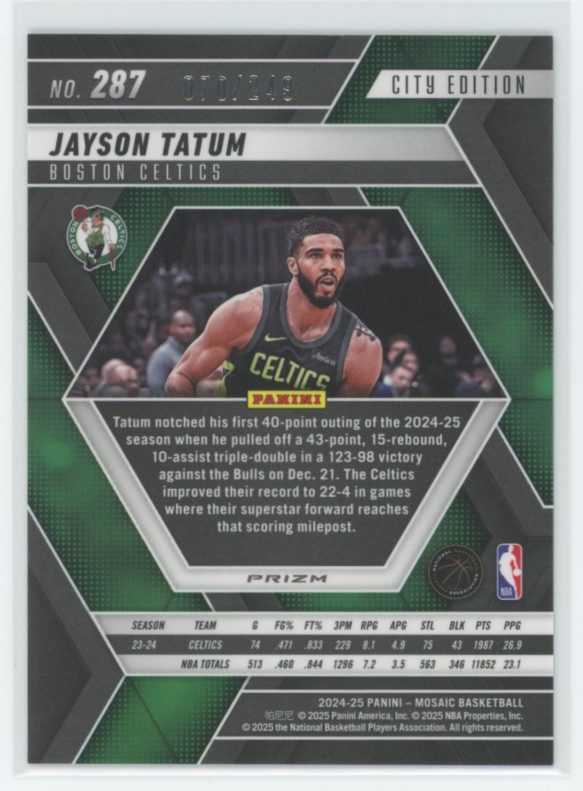 2024-25 Panini Mosaic City Edition Purple Fluorescent Jayson Tatum /249 #287
