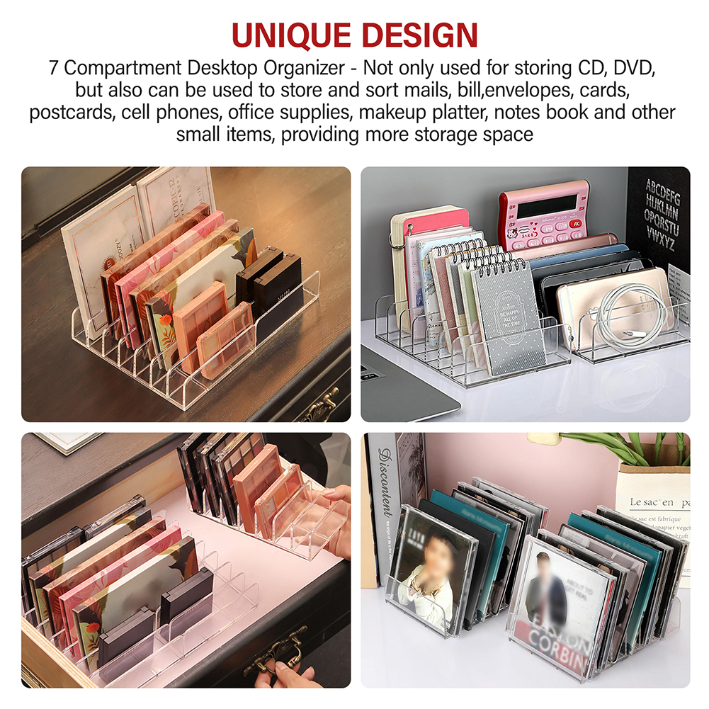 -【Unique Design】7 Compartment Desktop Organizer - Not only used for storing CD, DVD, but also can be used to store and sort mails, bill,envelopes, cards, postcards, cell phones, office supplies, makeup platter, notes book and other small items, providing more storage