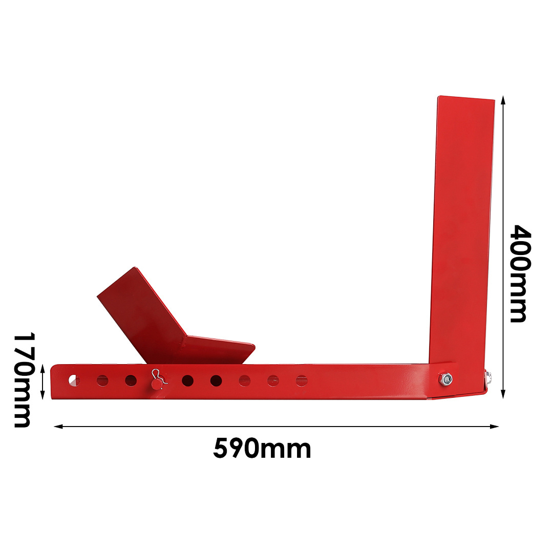 Diese Radklammer ist für Radgrößen von 8-24 Zoll geeignet. Es gibt 9 Löcher auf der Basis. Sie können sie je nach Radgröße einstellen.