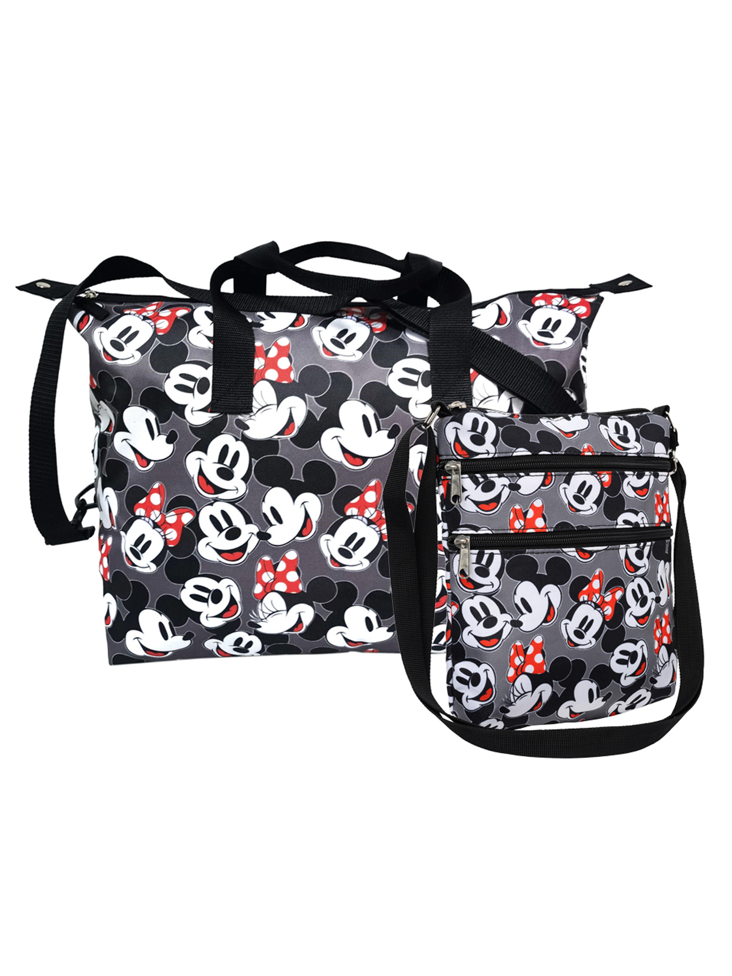 - Set Includes: (1) Disney Mickey & Minnie Mouse Duffel Bag Travel Weekender Carry-On Large & (1) Mickey & Minnie Mouse Passport Bag Faces Travel Women's Disney Crossbody Purse