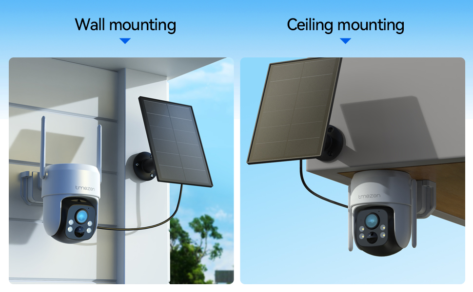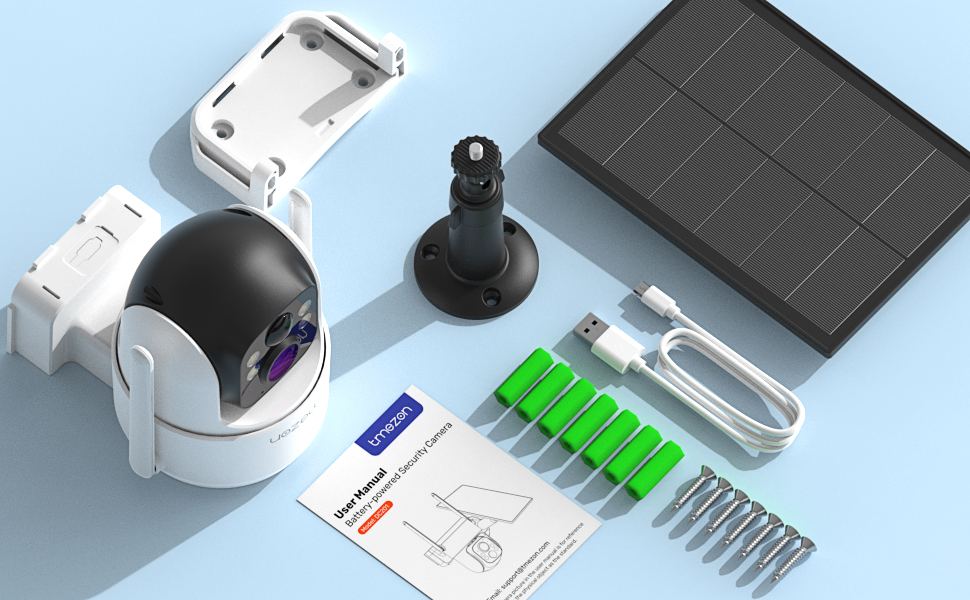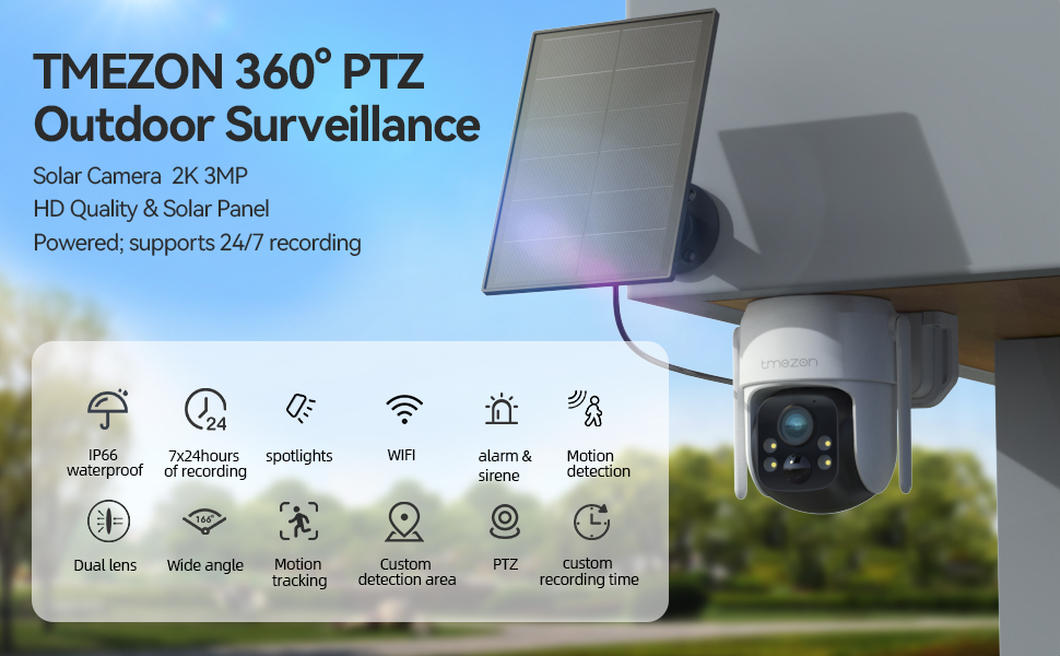 Telecamera di Sicurezza Esterna TMEZON con Batteria Solare, Telecamera 2K per