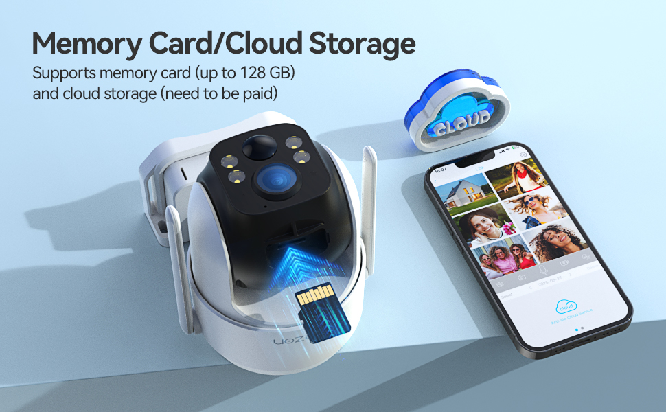 micro SD (massimo 128 GB, NON INCLUSO) o sul servizio cloud (prova gratuita