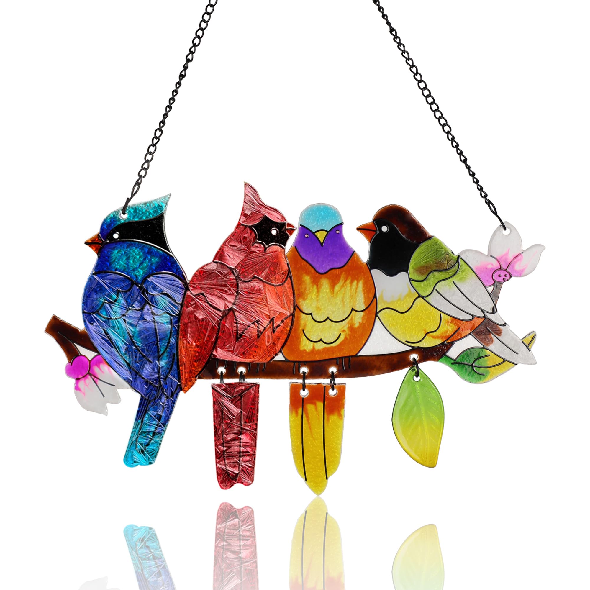 Bird-Themed Design: Our birds-on-branch stained glass suncatcher vividly showcases 4 colorful birds perching on a sturdy budding branch, including cardinals, hummingbirds and kingfishers. Great addition to your home decoration, adding natural beauty and serenity to your house