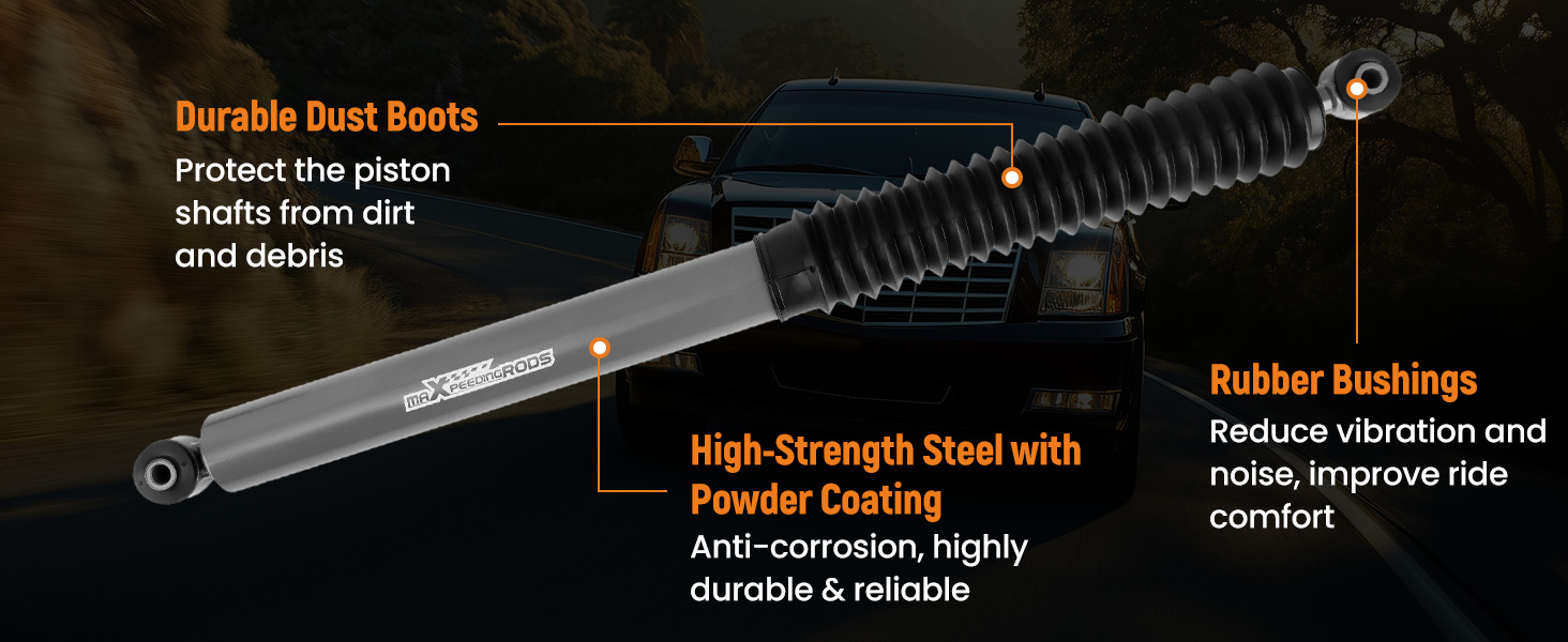Premium rubber bushings deliver superior shock absorption and smoother rides, reducing vibration and road noise.