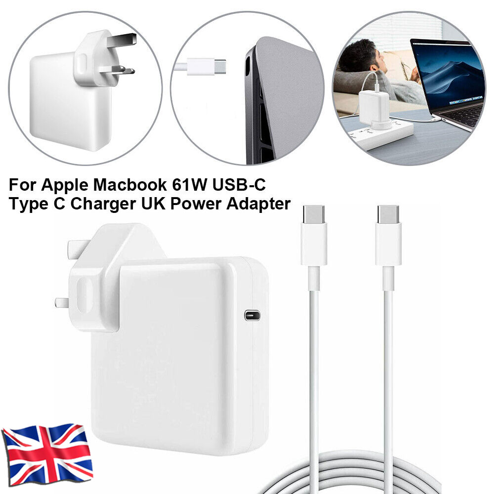 With Long USB-C to USB-C Charging Cable and UK 3 pin plug Power Adapter usb-c Replacement