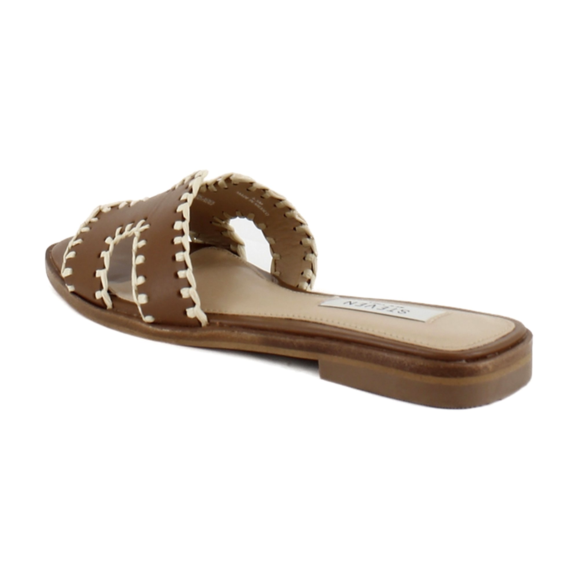 Step into effortless elegance with the Steve Madden Hadyn. This contemporary slide sandal showcases geometric cutouts on a wide strap, offering a chic, minimalist design that is perfect for any occasion. Crafted in a variety of materials, this versatile footwear piece is a must-have addition to any fashion-forward wardrobe.
