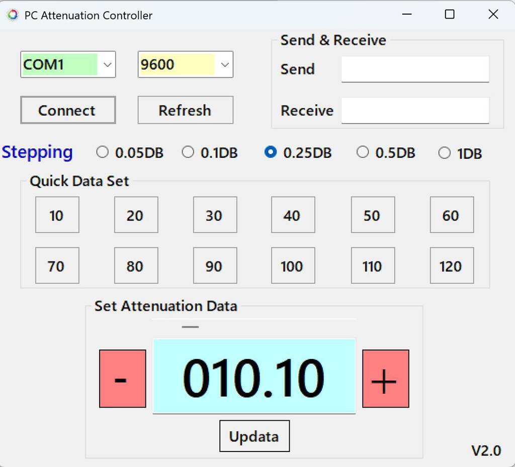 - Minimum attenuation step: 0.1DB