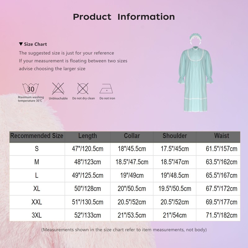 Set Include: 1Pc Nightgown, 1Pc Hat