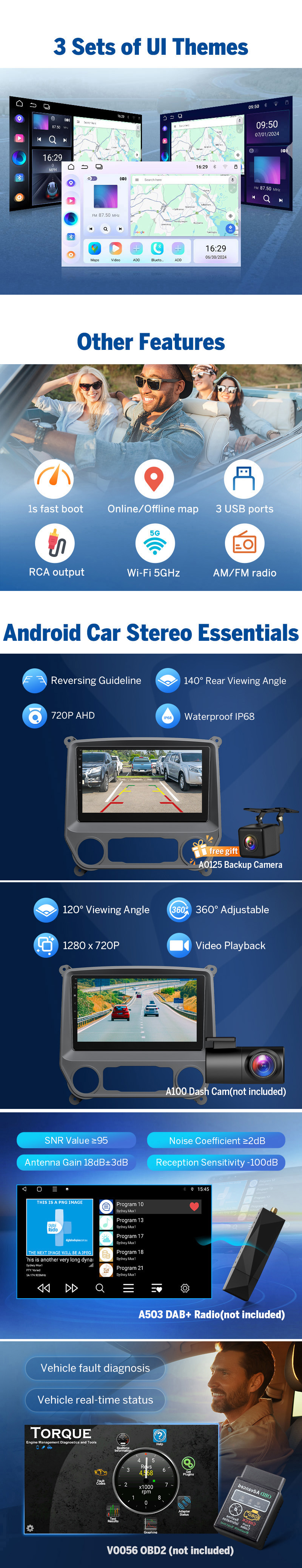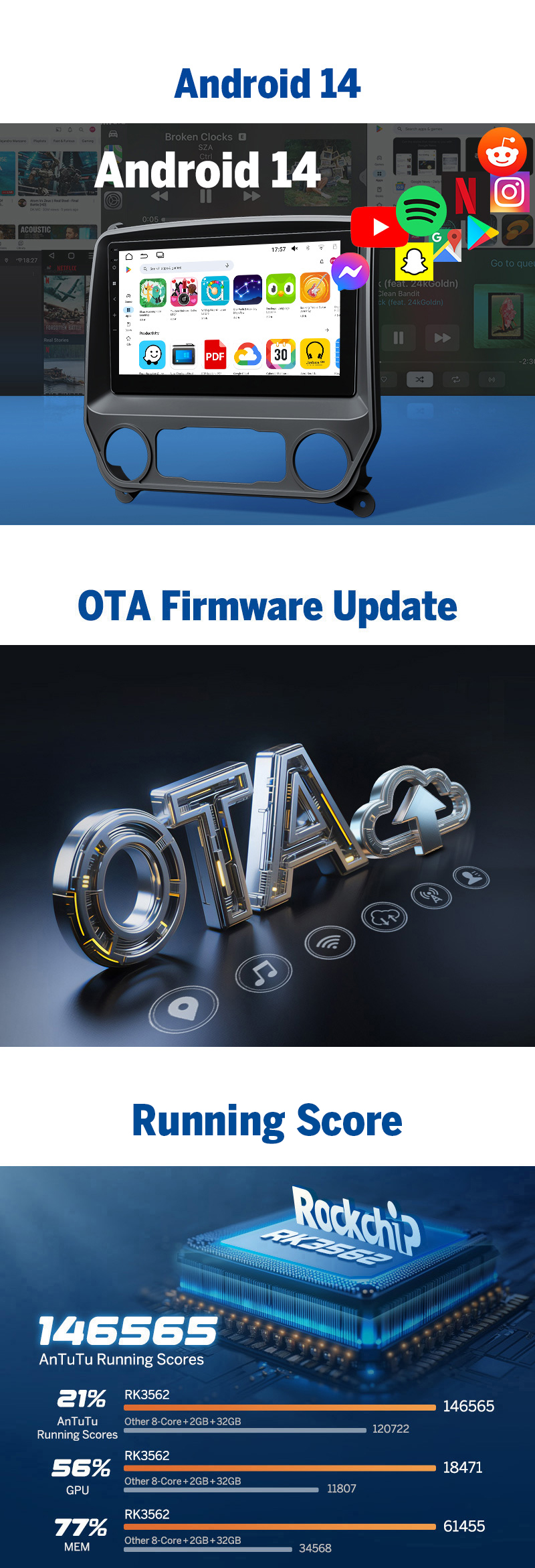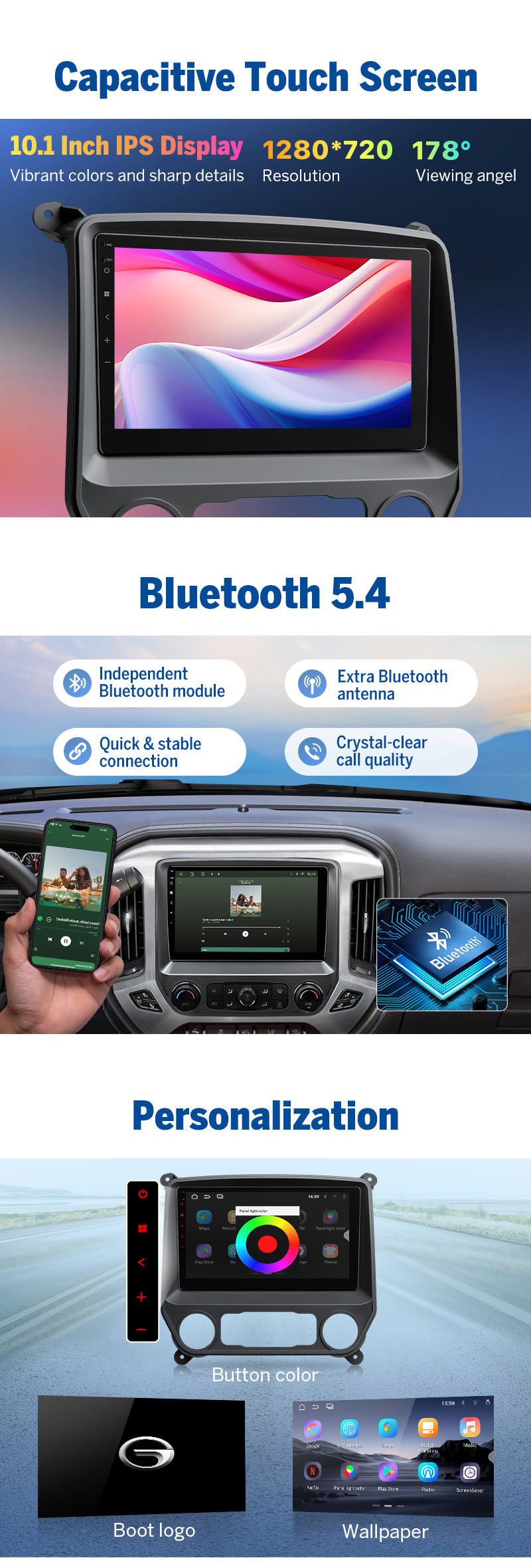 This Android Version head unit is a popular upgrade for drivers seeking a modern Double DIN touchscreen system that delivers smoother navigation, stronger connectivity, and true Plug & Play integration for Chevy Silverado and GMC Sierra models. Its enhanced RAM/ROM support, DSP tuning features, and GPS Navi accuracy make it ideal for everyday commuting and long-haul travel. With Wireless CarPlay, Android Auto, WiFi 6, Bluetooth 5.4, and CANBUS compatibility, it offers a seamless Factory-style experience while adding premium tech. Perfect for shoppers searching “2 DIN Android stereo,” “truck-compatible Android radio,” “split-screen car display,” or “Android head unit compatible with Silverado/Sierra 2014–2018.”