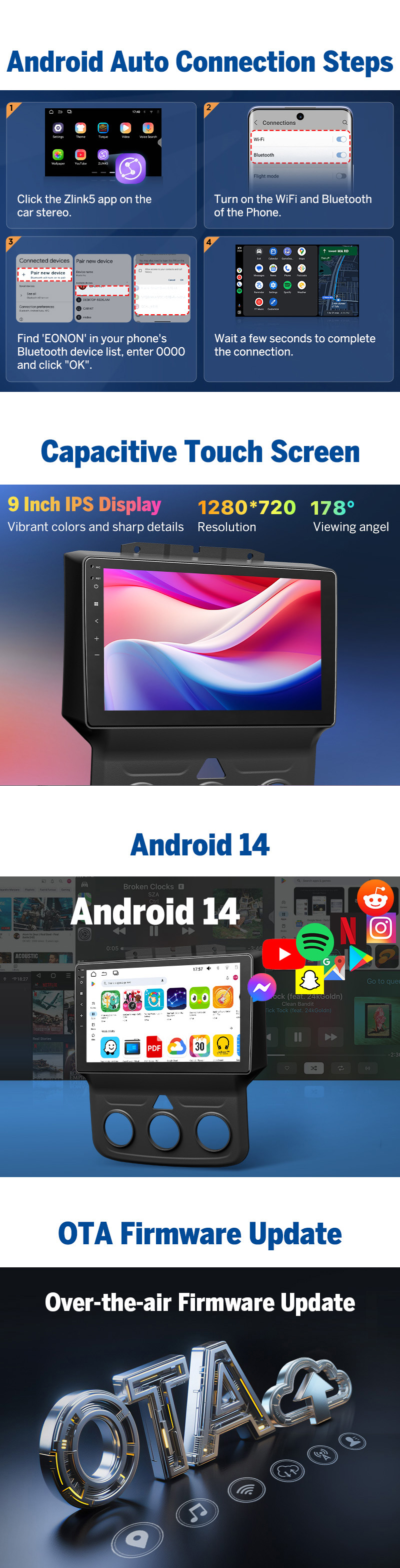 Upgrade your Dodge RAM with a vehicle-specific Android 14 infotainment system built for modern driving. The Eonon DGRMX7 is designed exclusively for Dodge RAM 1500 / 2500 / 3500 (2013–2018) and RAM 1500 Classic (2019–2024) with manual A/C.