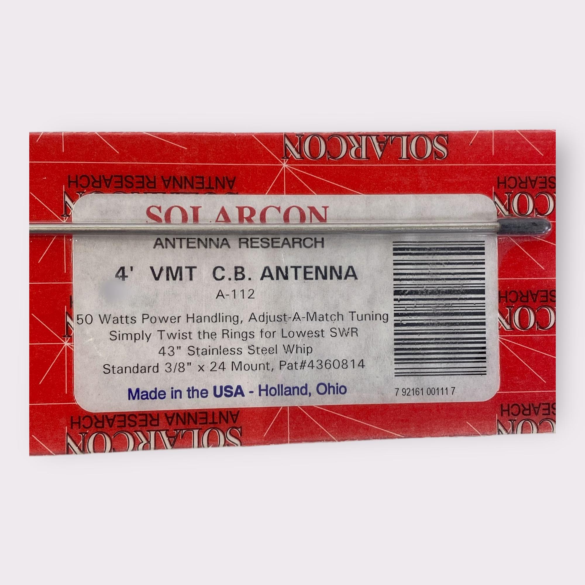 Additional Notes: This listing is for a Solarcon A-112 4ft Tunable Stainless Steel VMT CB Whip Antenna.