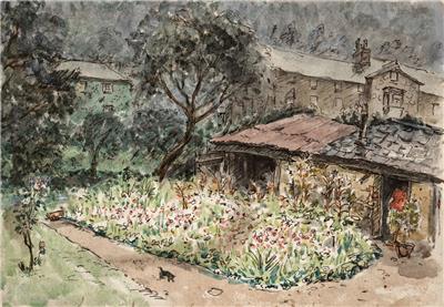 GARDENS LANDSCAPE Watercolour Painting c1950
