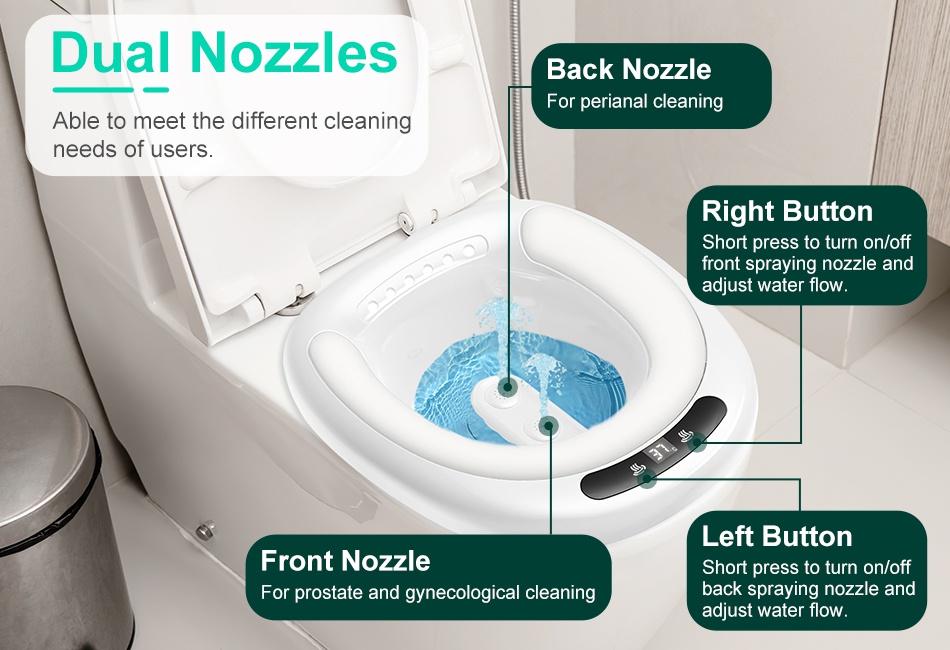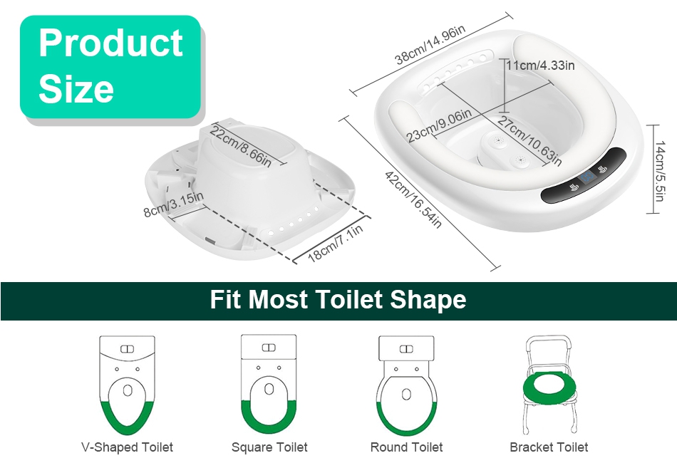 - Versatile Usage & Compatibility:This electric sitz bath is specially designed for women and men for private part care,hemorrhoids,Bartholin's cysts and postpartum care and cleaning for pregnant women. Suitable for most toilets. In addition,the soft PVC cushion with sponge filling makes it very comfortable to sit.