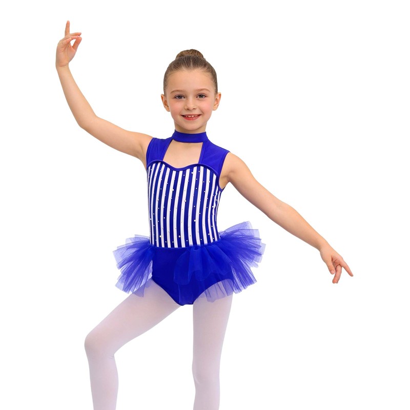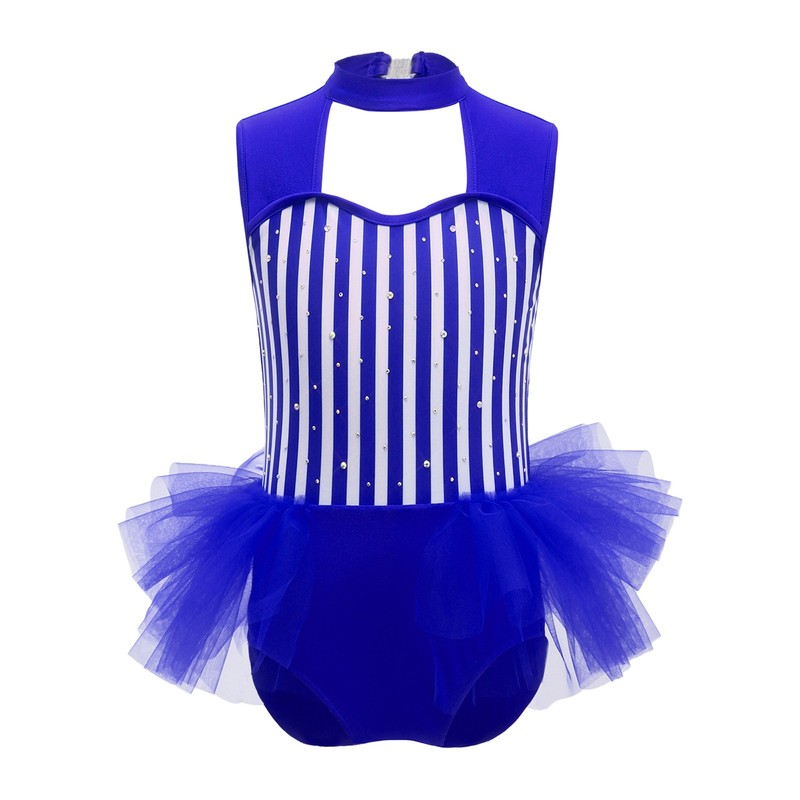 Girls Costume Cutout Design Bodysuit Competition Jumpsuit Ruffled Overlay Dance