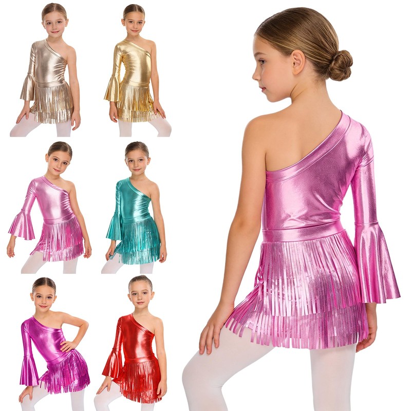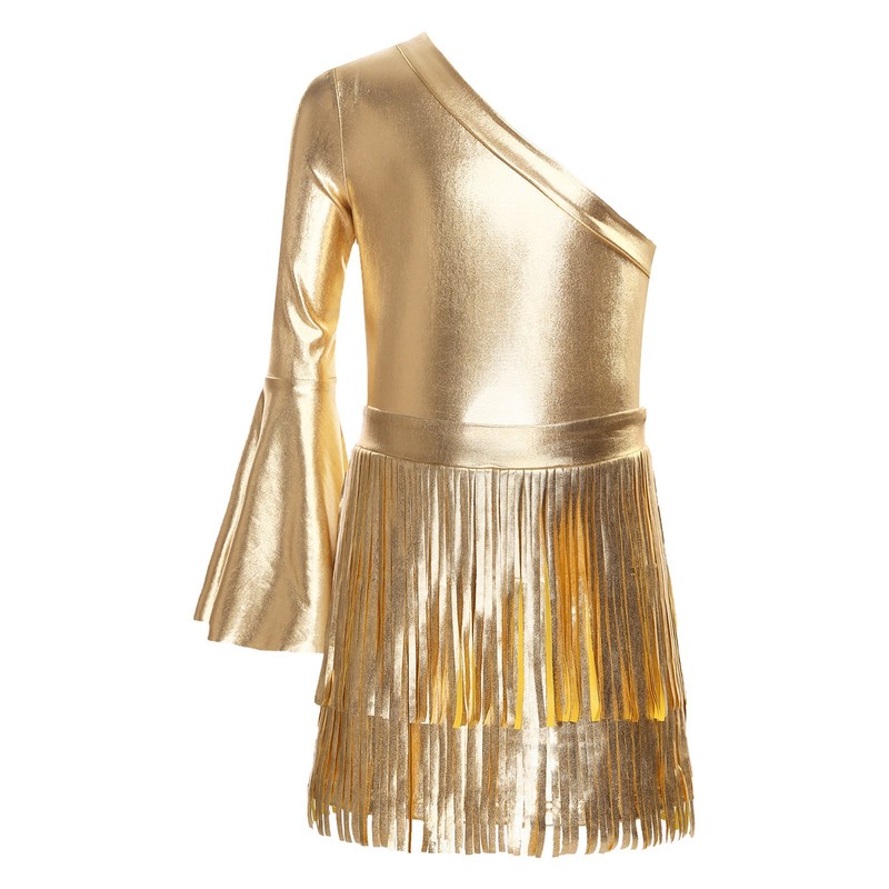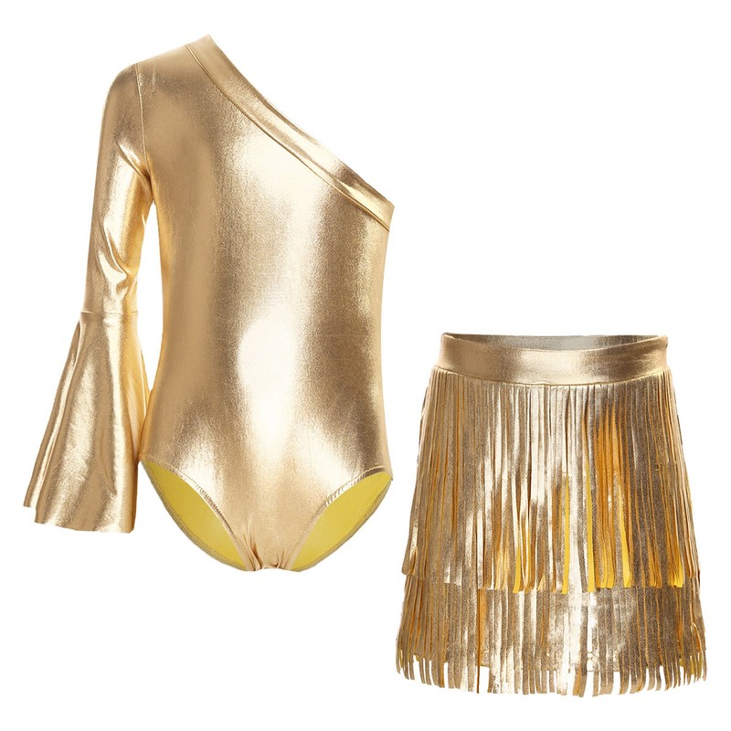 Girls Outfit Glossy Set Metallic Costumes With Fringed Skirt Christmas Themed