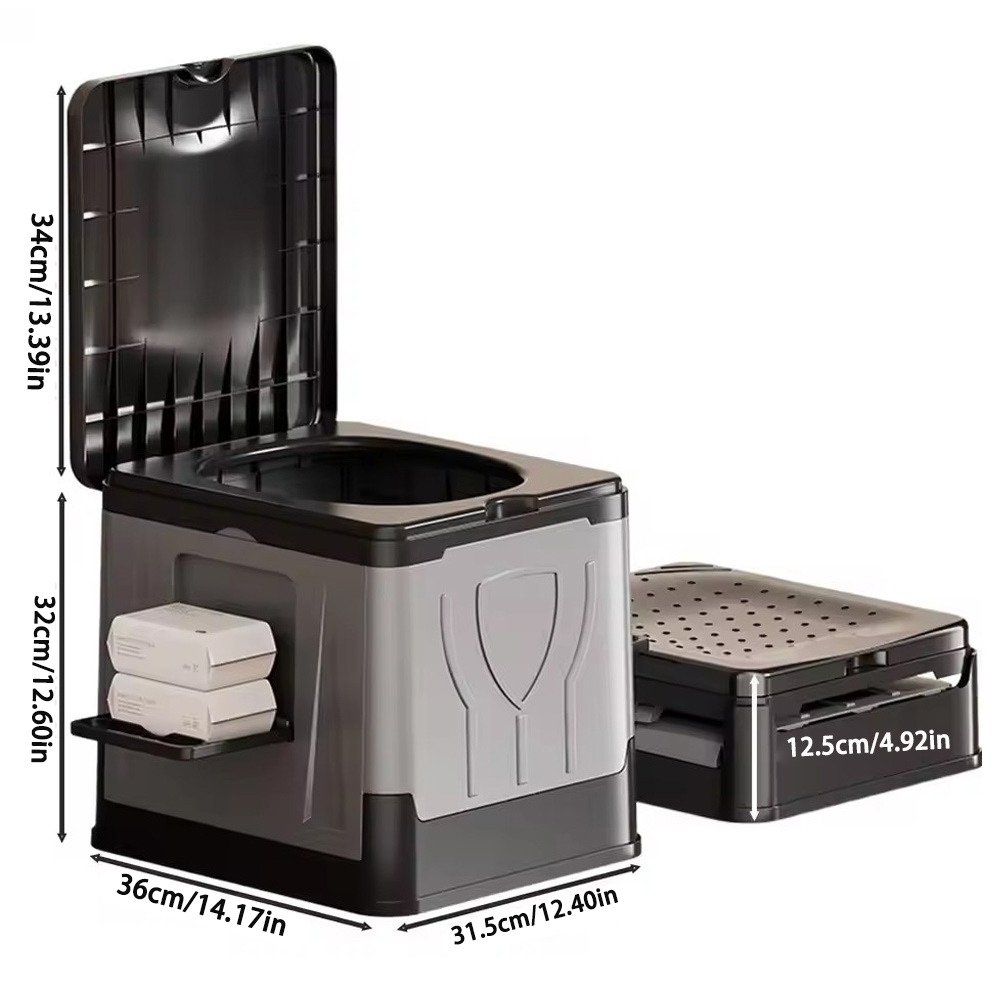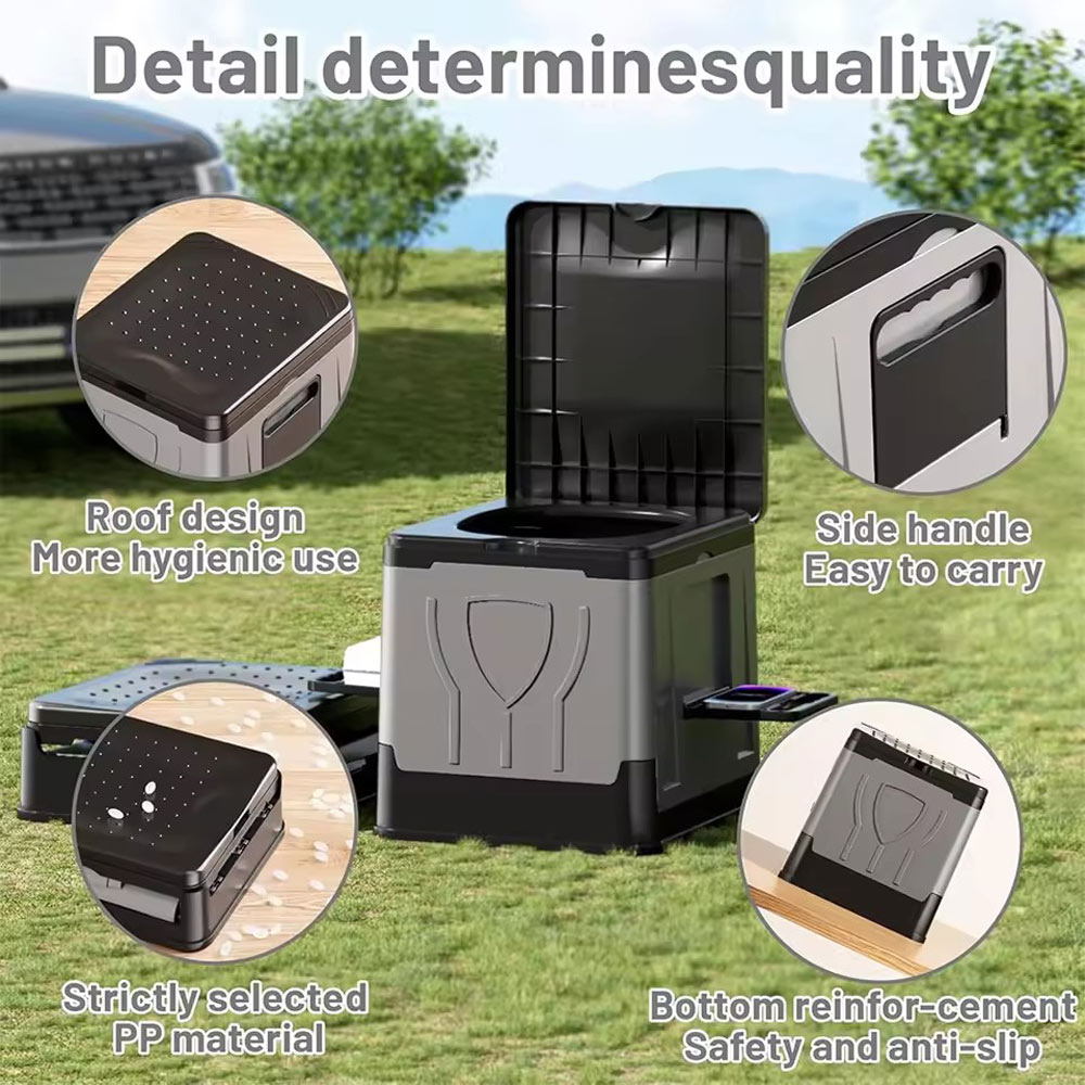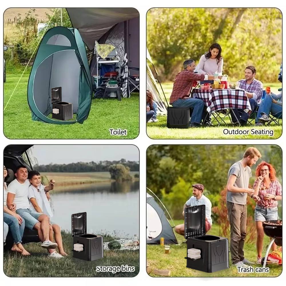 Designed for both indoor and outdoor use, this mobile toilet features a foldable structure and a supportive potty seat, ensuring adaptability for car trips, RV travel, hiking, camping or beach excursions. Its lightweight nature enhances portability while maintaining suitability for tents, homes and similar environments, providing dependable utility