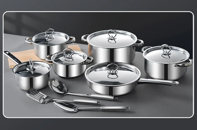 Set di Pentole Premium in Acciaio Inox con Coperchi Set di Pentole e Padelle Set da Cucina Resistente con Utensili Lavabile in Lavastoviglie