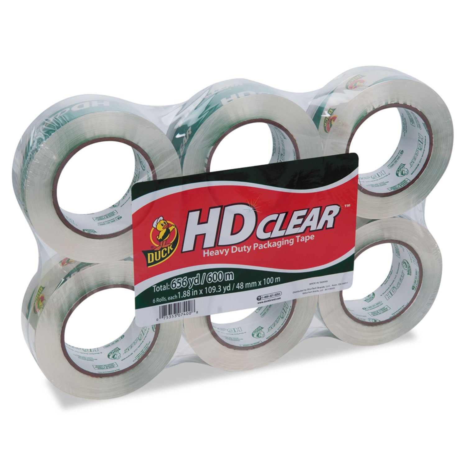Duck HD Clear Heavy Duty Packing Tape with Dispenser, 1.88 Inch x 109.3 Yards, 6 Rolls (299016)