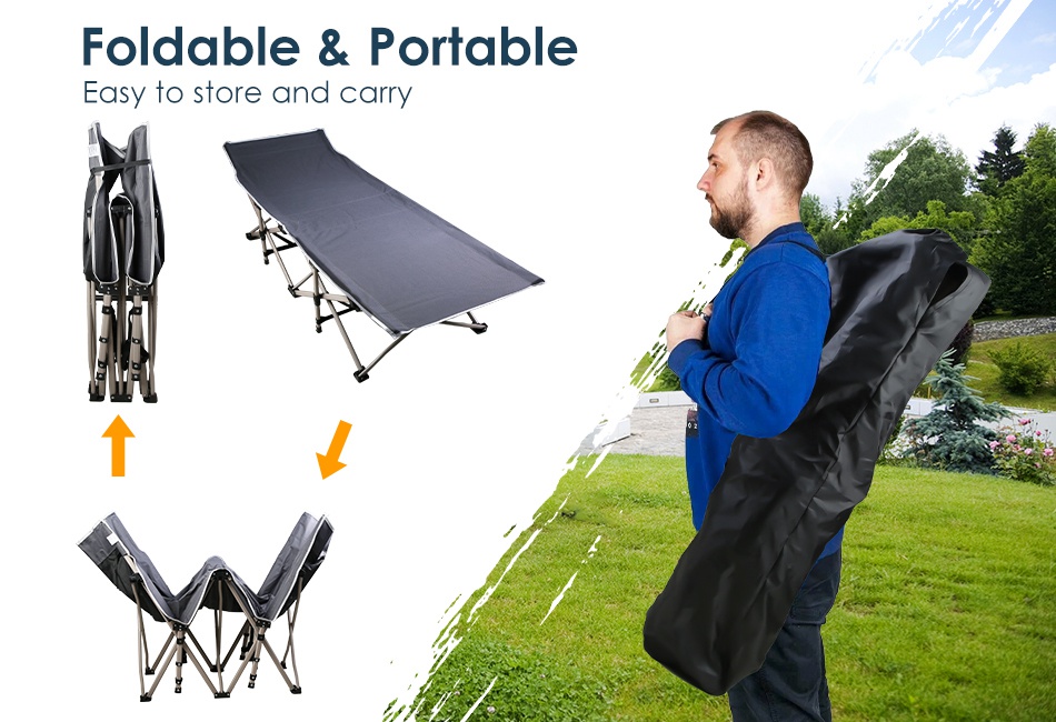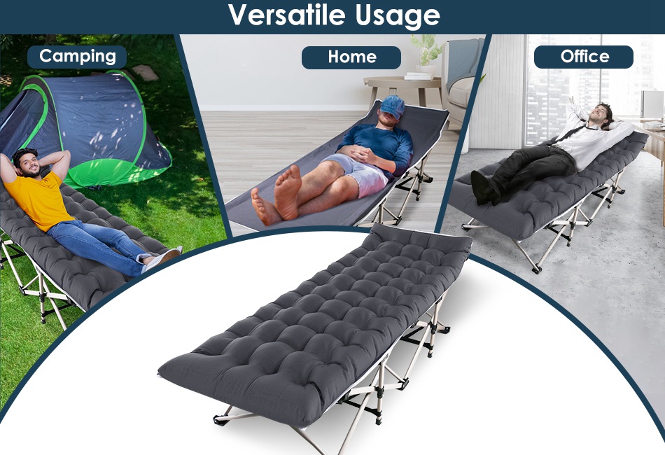 - Versatile Usage:This folding cot is not only great for any outside adventures like hiking,camping,fishing,hunting,traveling,etc.,but also can be used as a snap bed in the office or as a perfect temporary bed when guests visit your home.