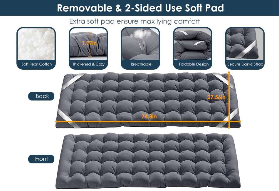 - Comfortable Design:Our cot bed is designed with an incline head support to ensure great head support even without pillow. Besides,an extra soft pad is provided to add a soft lying experience and ensure max comfort!
