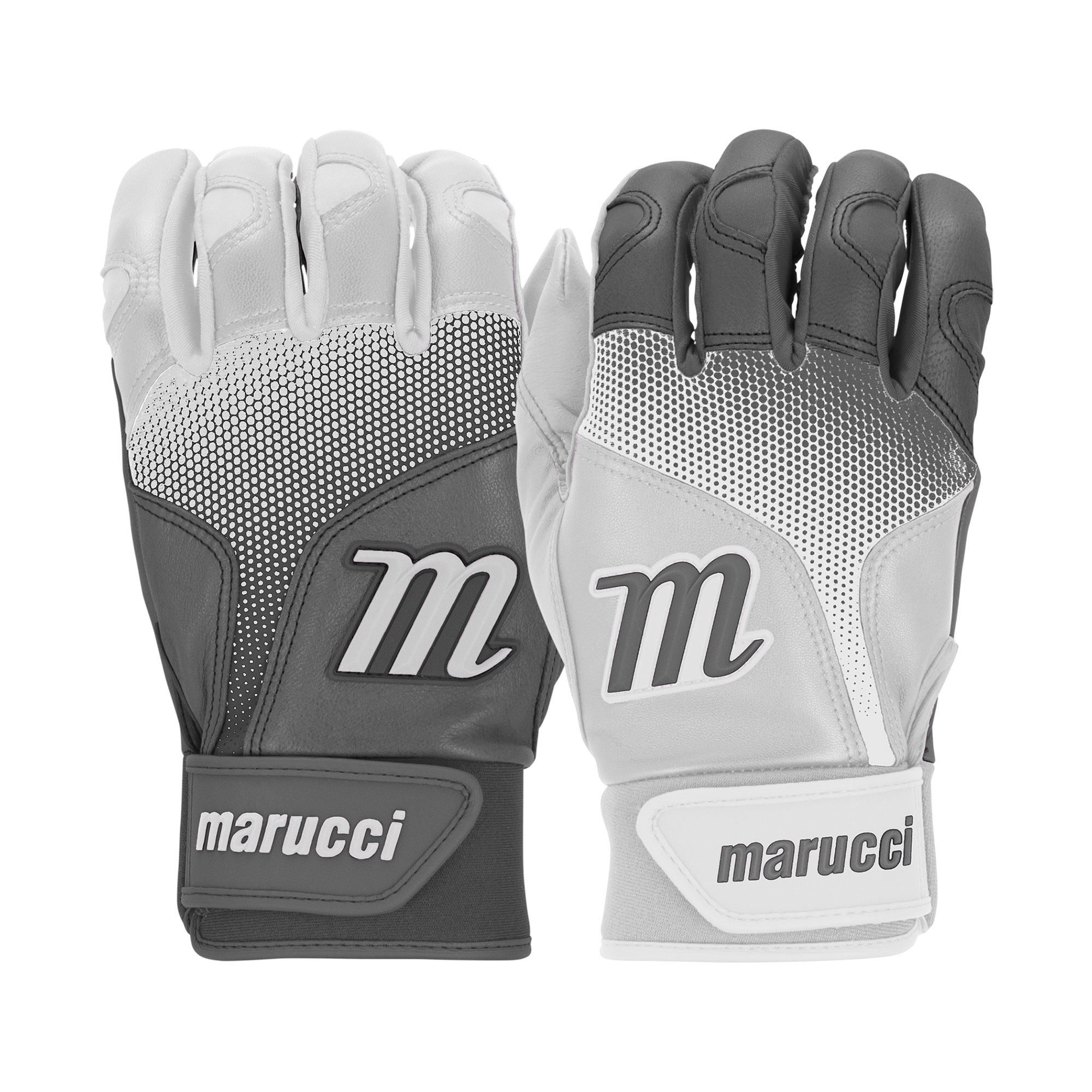 The new Marucci Adult PWR Fade batting gloves offer finger break contours to decrease bunching for a clean, smooth feel. These batting gloves also feature Cabretta sheepskin palm provides maximum grip and feel. sheepskin leather thumb layer which prevents friction in a high-wear areas and two-way stretch inserts for superior mobility. Additionally, there is an ergonomic neoprene cuff design for enhanced fit and mobility.