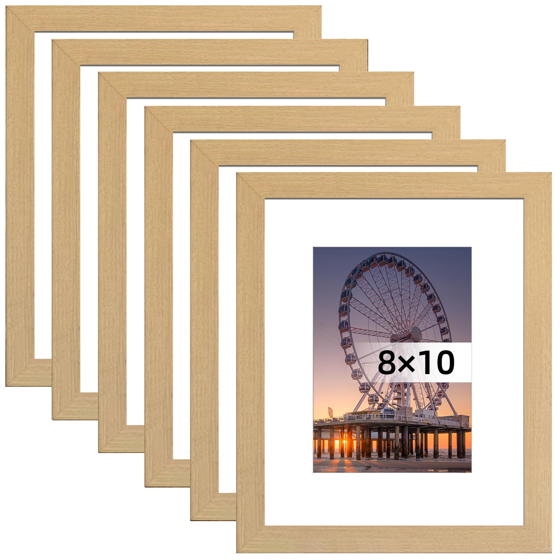 A premium quality, Beautiful gallery wall picture frame set 6-pack 8x10 picture frame makes it a great gift for families to highlight beautiful memories Product Details Package quantity: 6 pack photo frames Size: 5x7in with mat or 8x10in without mat Frame Material: MDF Orientation: Horizontal & Vertical Photo Protector Material: HD plexiglass Mount Type: WALL & TABLE TOP Color: Natural woodgarin TIPS You need peel the protective film on the both side before use it, giving you a clear view of the prints