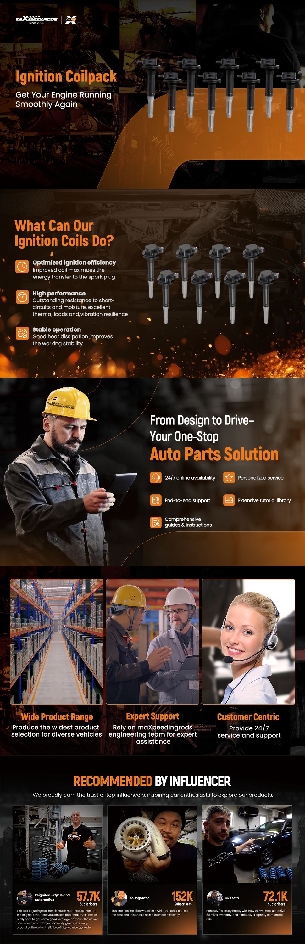 3. Isolator manufactured using high voltage-resistant thermoplastics to prevent premature coil failure.