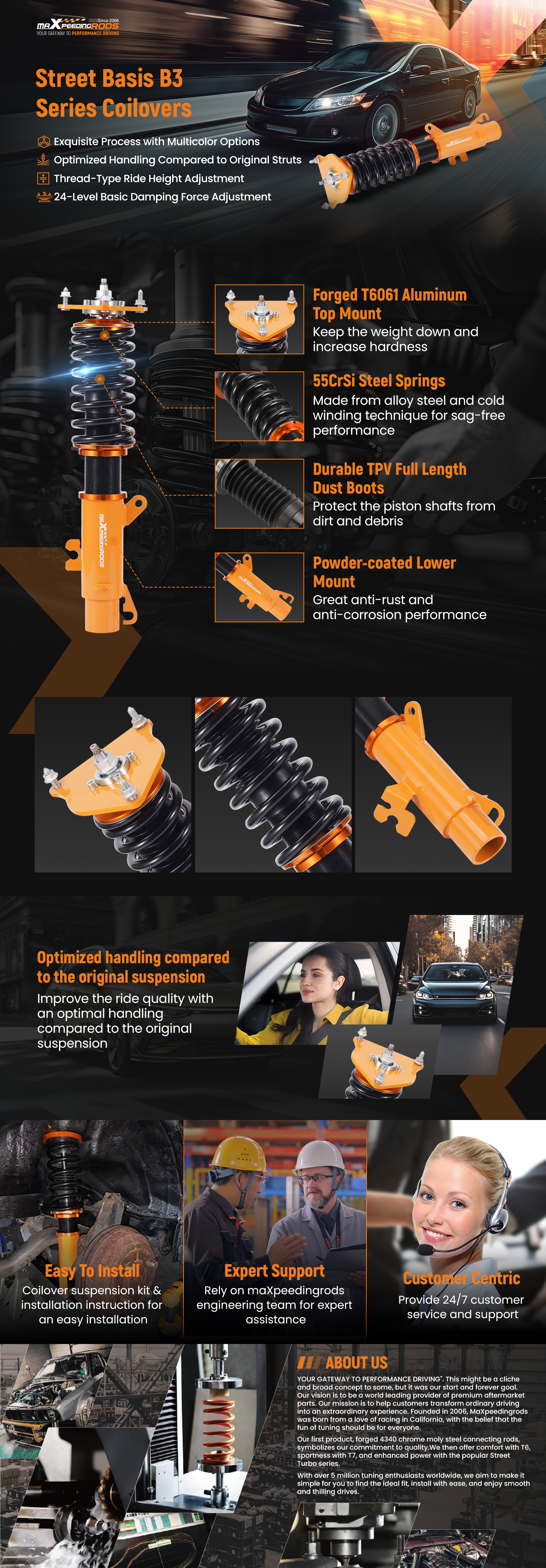 1. Höhenverstellung von 25-75 mm (je nach Fahrzeugmodell) für einen niedrigeren Schwerpunkt und eine aggressivere Optik