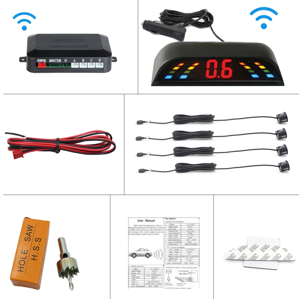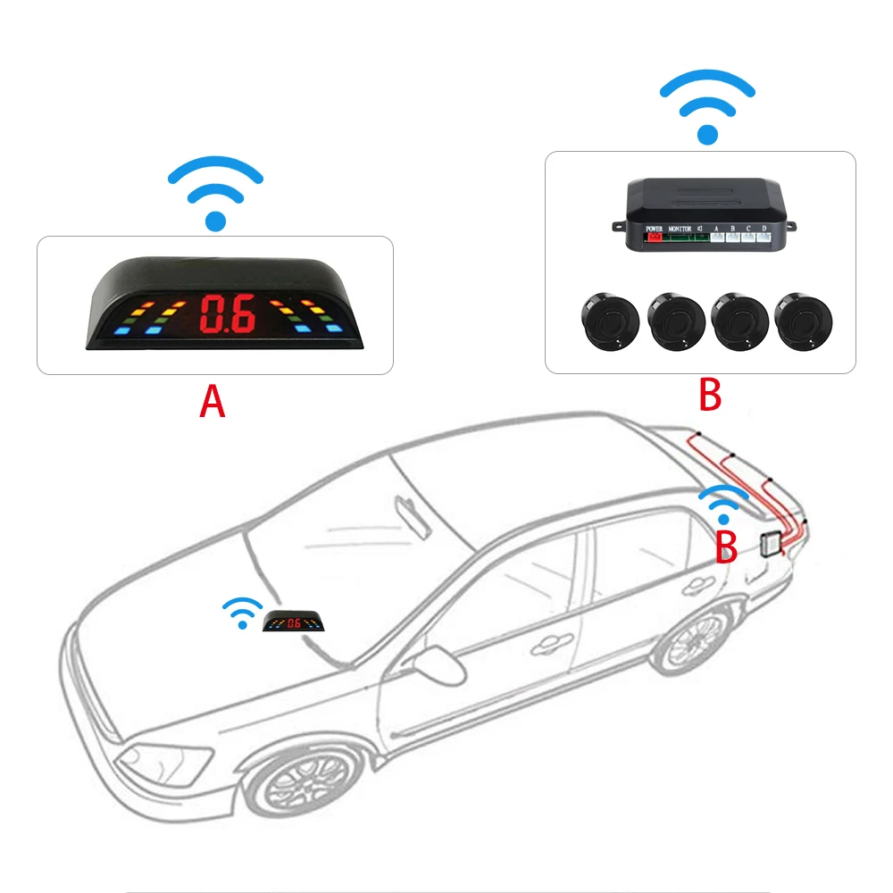 Wireless Car Parking Sensor Car Parktronic LED With 4 Sensors Reverse Backup Car Parking Radar Monitor Detector System 22MM