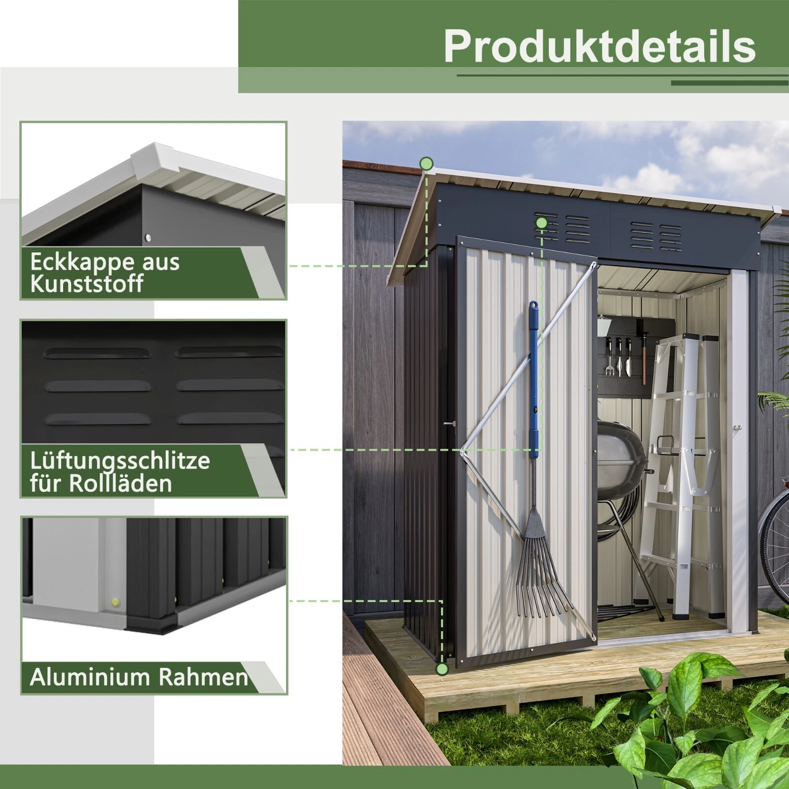 1 × Metall Geräteschuppen