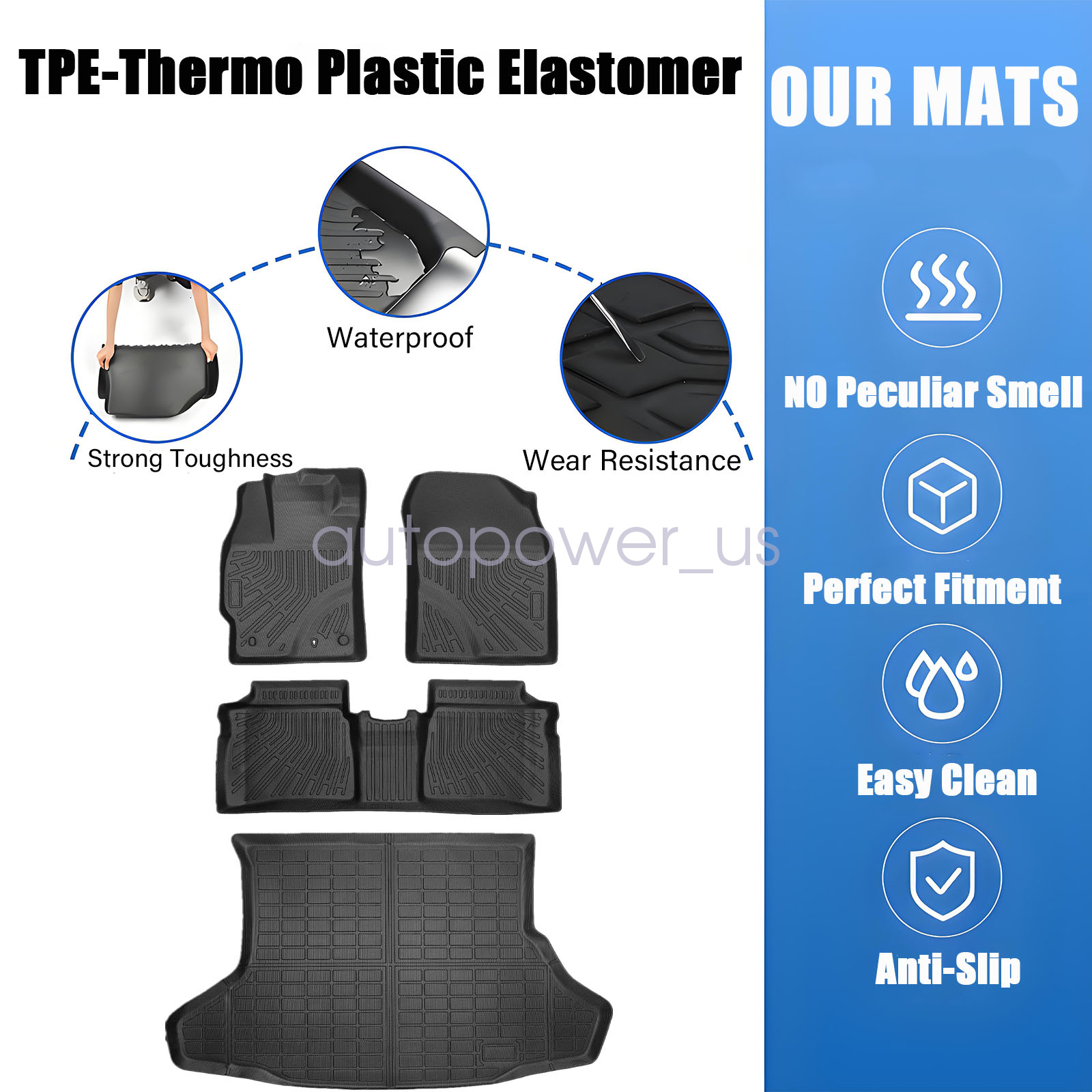 Soillar TPE Floor Mats Liners / Trunk Cargo Liner For 2010-2015 Toyota Prius (Only 5-door liftback)