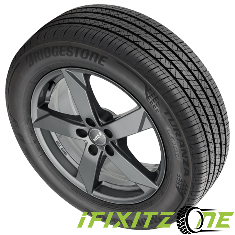 The Bridgestone Turanza LS100 is an all-season touring tire designed for passenger vehicles and SUVs, offering a balance of comfortable performance and stable handling. It features an advanced tread compound for wet and winter traction, wide circumferential grooves to resist hydroplaning, and an optimized tread pattern to provide a quiet ride and responsive steering. This tire is known for its all-year-round performance and is sometimes used as original equipment by certain automakers, such as Mercedes. The tire is engineered to match the original equipment performance of the vehicles it is designed for. Wide circumferential grooves channel water and slush away from the tire's footprint to enhance grip in wet conditions.