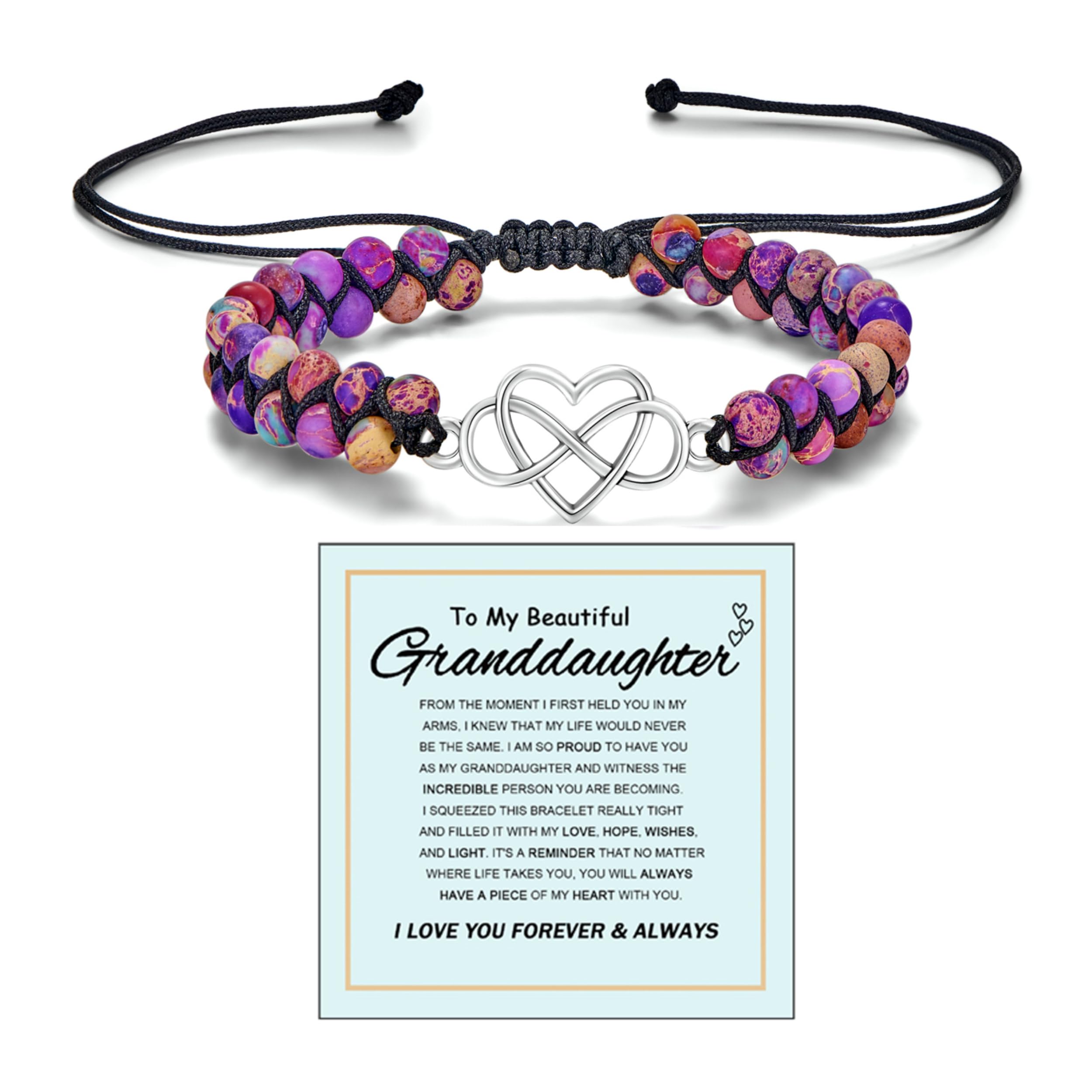 To My Granddaughter Infinity Bracelet From Grandma, Forever Love Heart Natural Emperor Stone Double Layer Purple Beaded Woven Wrap Daughter Bracelets Adjustable Protection Gift Jewelry (Infinity Heart Granddaughter)