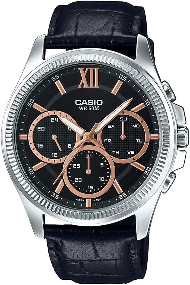 Casio MTP-E315L-1AV Men's Watch Leather Strap Black Dial Classic
