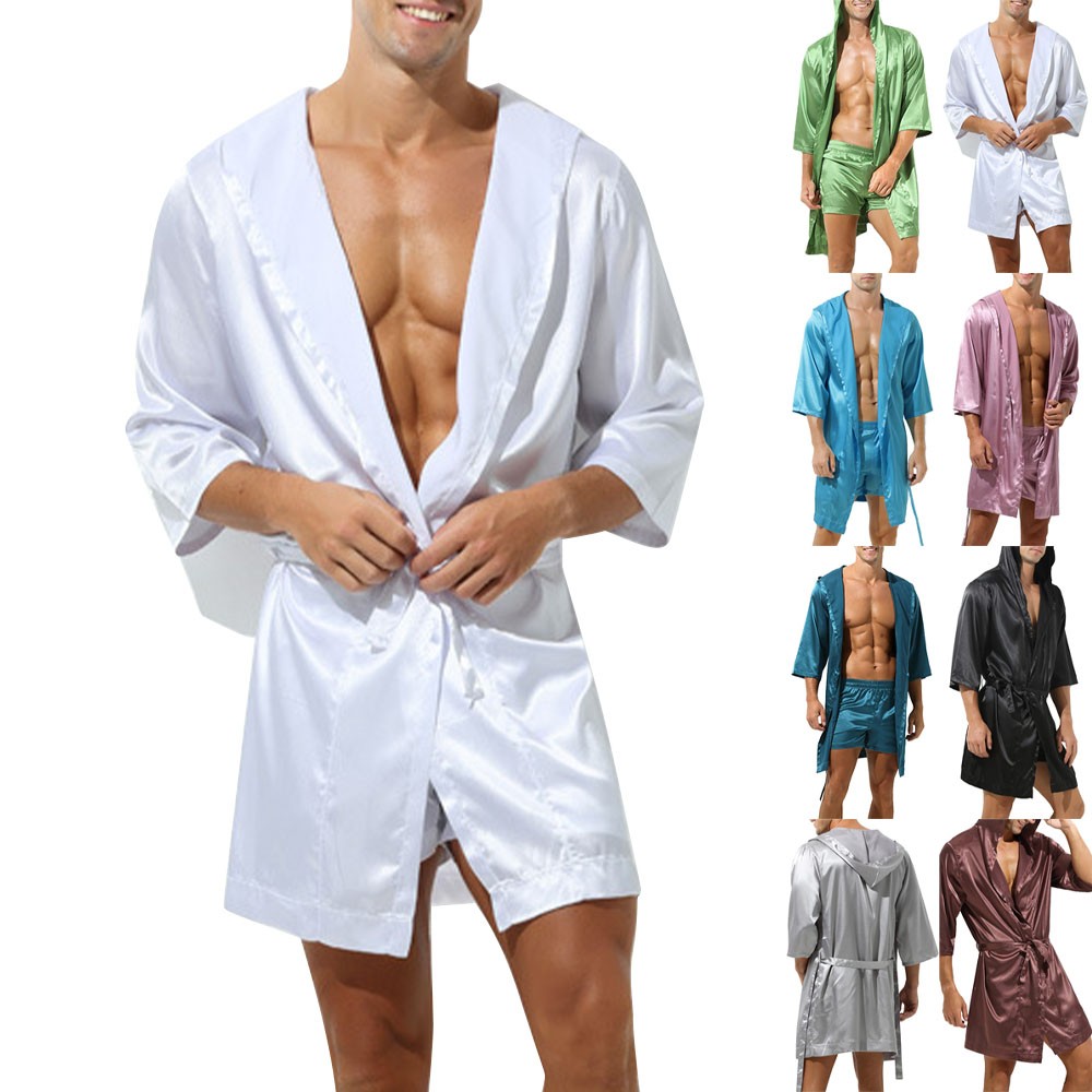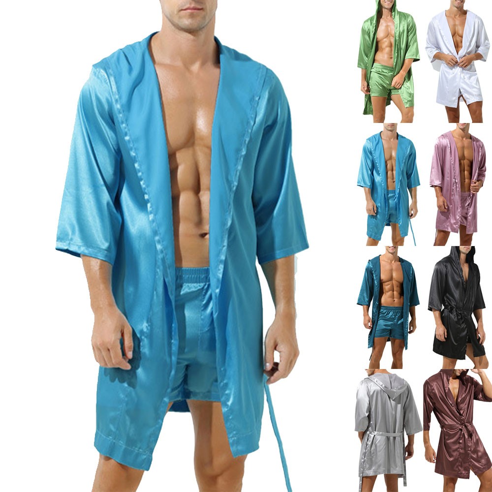 * Item Description:️Fashion Men Hooded Comfort Satin Kimono Simulation Silk Bathrobe Pajamas Sleepwear Gown Bath Robe Nightwear