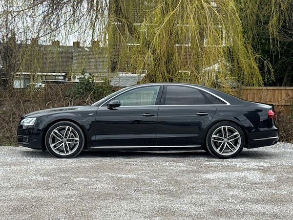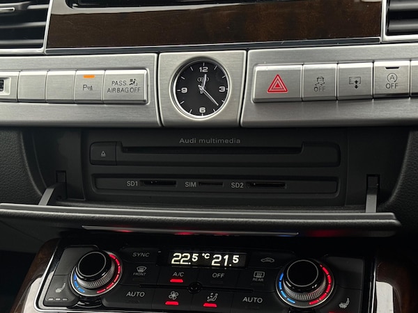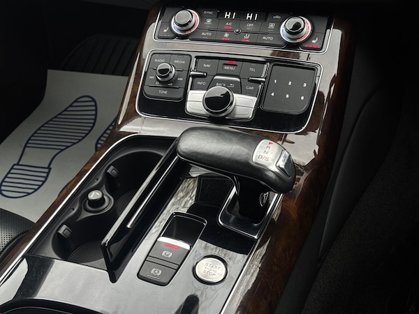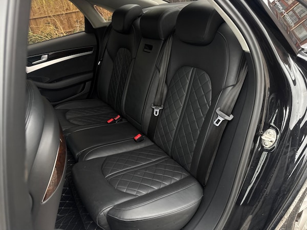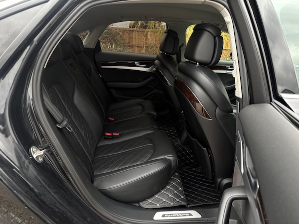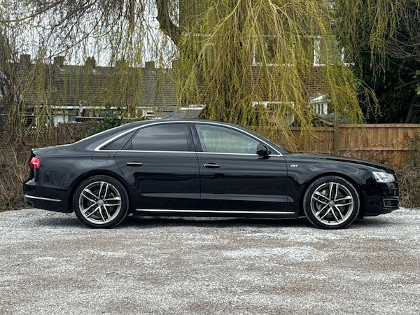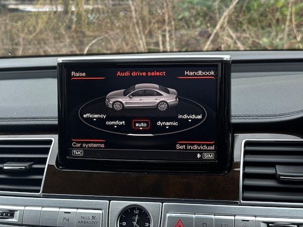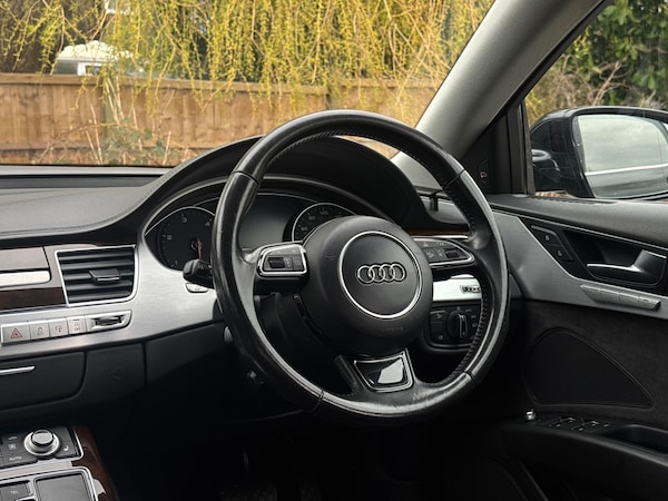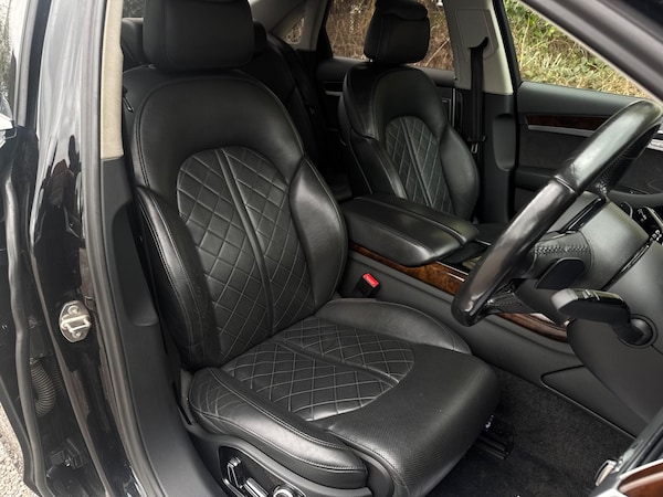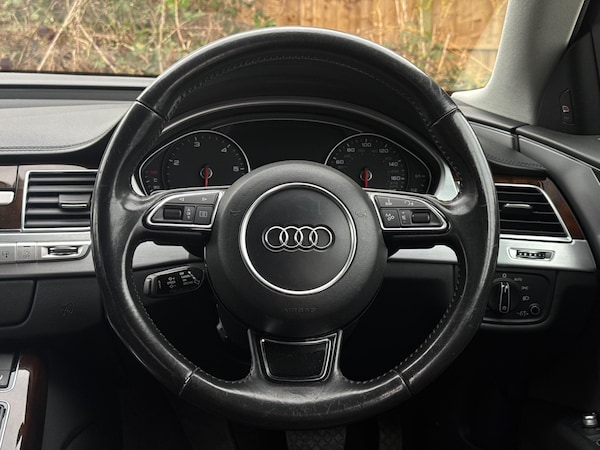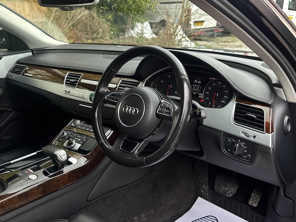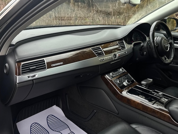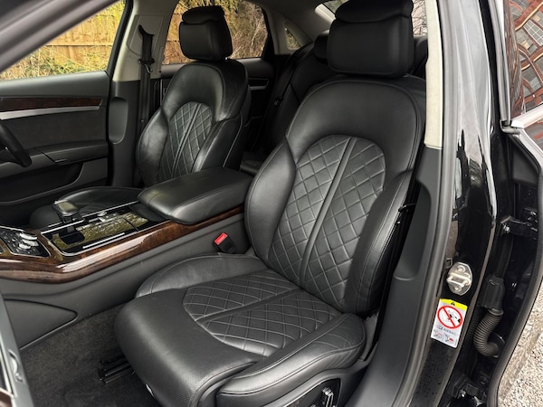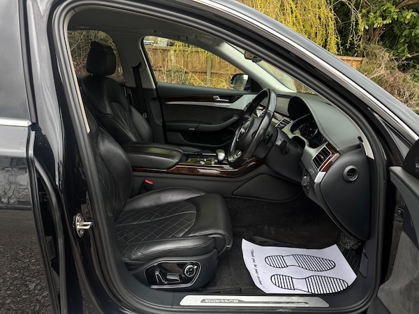 SERVICE HISTORYLOGBOOKK2Audi side assist including rear pre-sense and Audi active lane assist£900Audi parking system advanced with top view£500Mobile telephone preparation - High with Bluetooth privacy headset located in front centre armrest£480Heated front & rear seats£350Phantom black, pearl effectSERVICE HISTORYLOGBOOKK2Valcona leather Comfort seatsThis 2015 Audi A8 TDI V8 Sport Executive presents a remarkable opportunity with its exceptionally low mileage of just 66,874 miles for its age. This premium saloon boasts a powerful 4.2 litre diesel engine paired with a sophisticated four wheel drive system, ensuring confident performance in all conditions. As a Euro 6 compliant vehicle, it meets stringent emission standards. The Sport Executive trim level enhances the already luxurious A8, offering a refined driving experience.Experience superior audio with the BOSE Centerpoint 2 and Surround Sound systems, delivering an immersive listening environment. Parking is made effortless thanks to front parking sensors and a front camera, part of the advanced parking assistance suite. The Advanced Key system provides convenient keyless entry, allowing you to access the spacious interior and its generous boot space with ease. This Audi A8 stands out with its impressive acceleration, reaching 0-62mph in a swift 4.7 seconds, a testament to its potent V8 engine and advanced engineering, setting it apart from other vehicles in its class.
