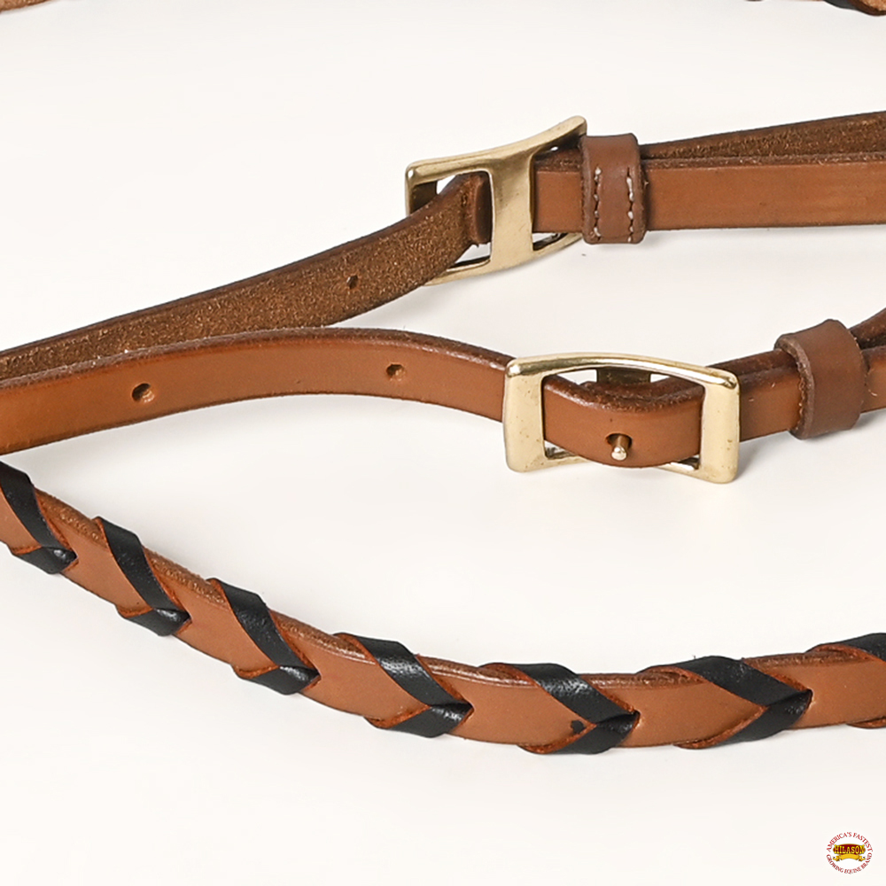 8 Feet Hilason Western Horse American Leather Laced Barrel Roper Reins Brown/Latigo