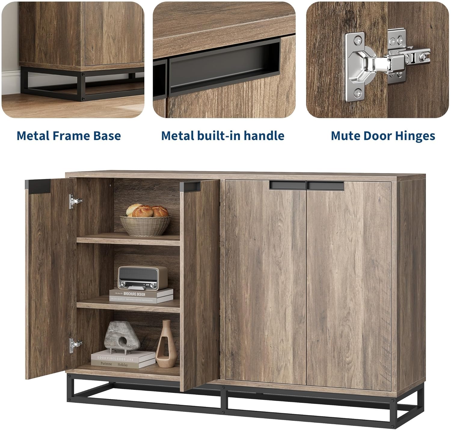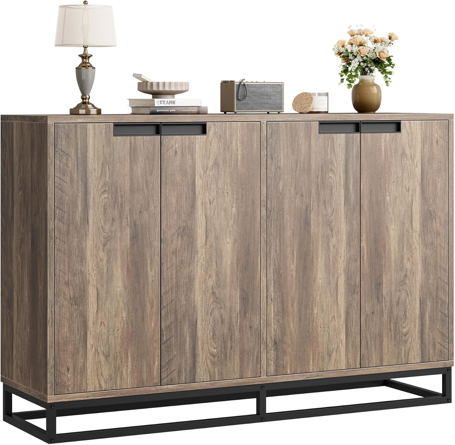 # Modern Farmhouse Buffet Sideboard - 4-Door Storage, Metal Base, 150LB Capacity