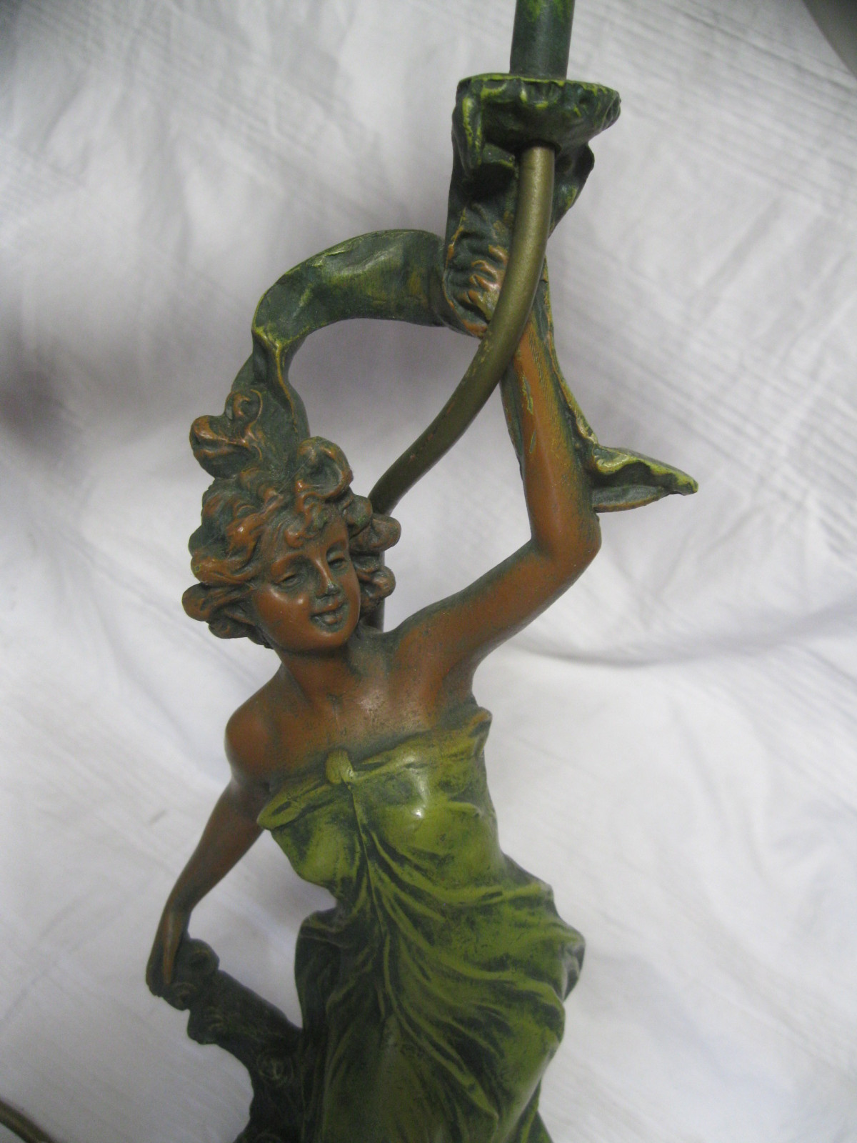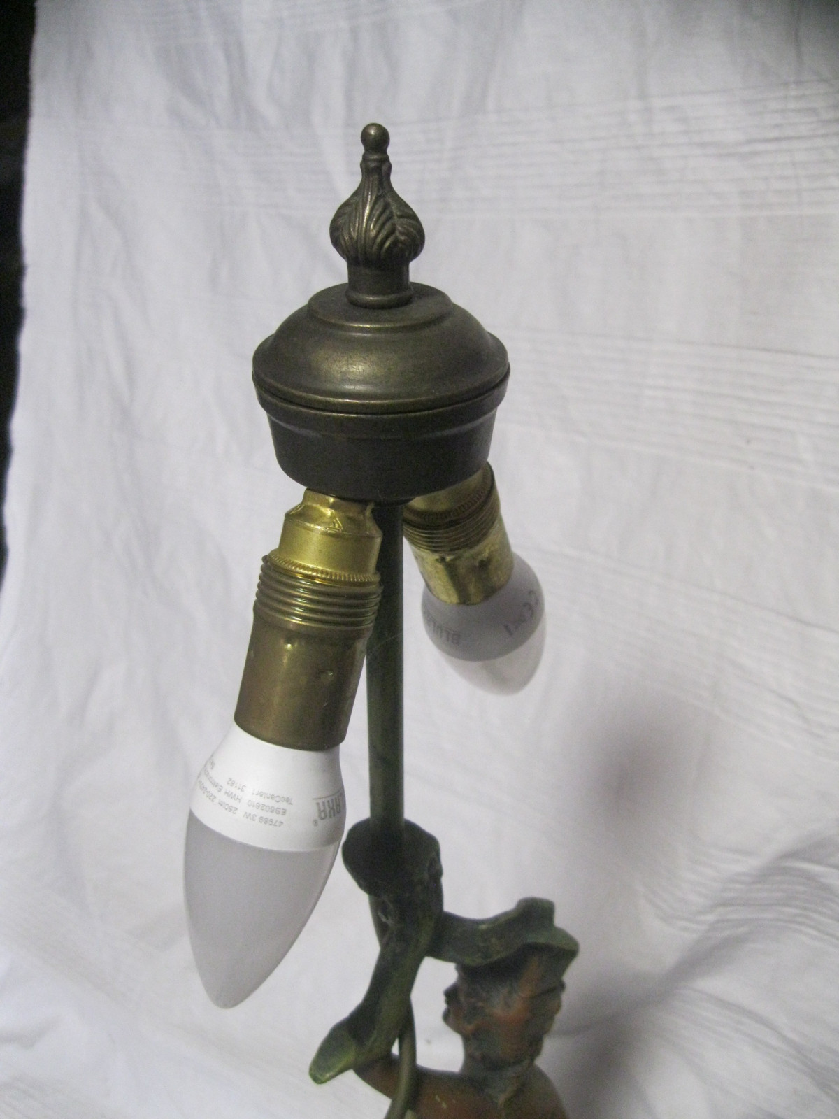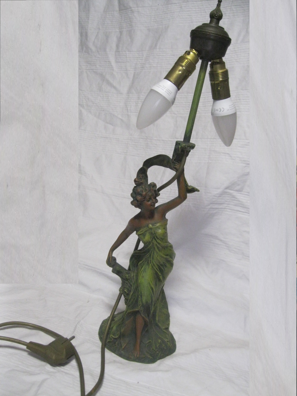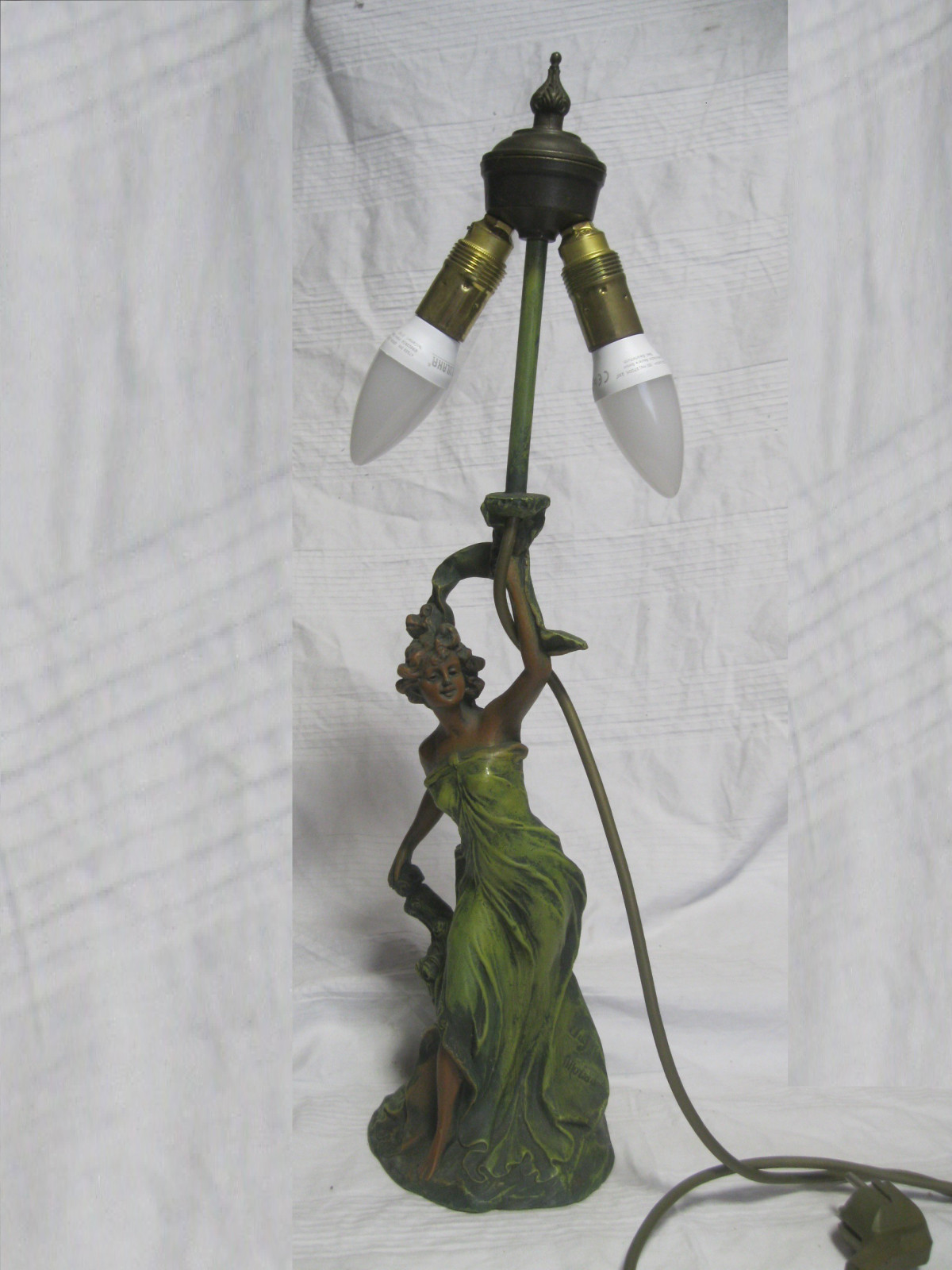 Tolle 2-flammigeTischlampe aus Bronzeguss, schön coloriert.