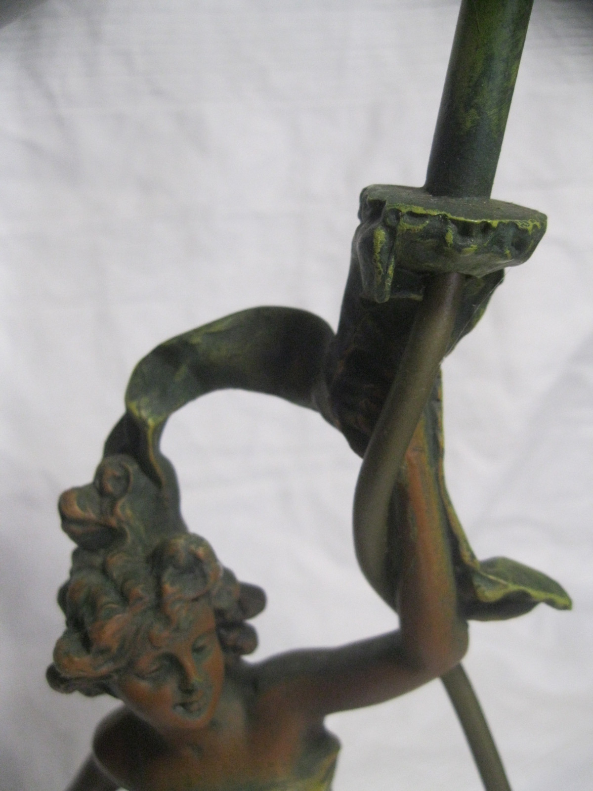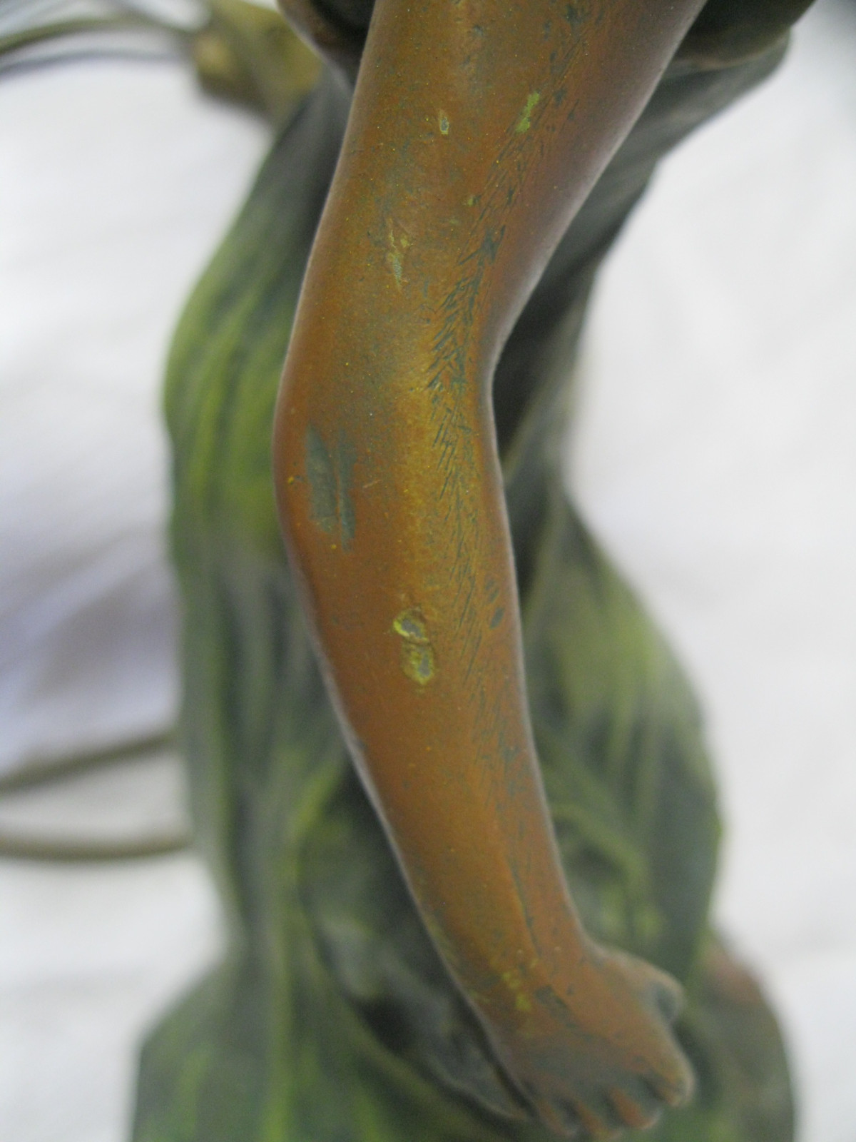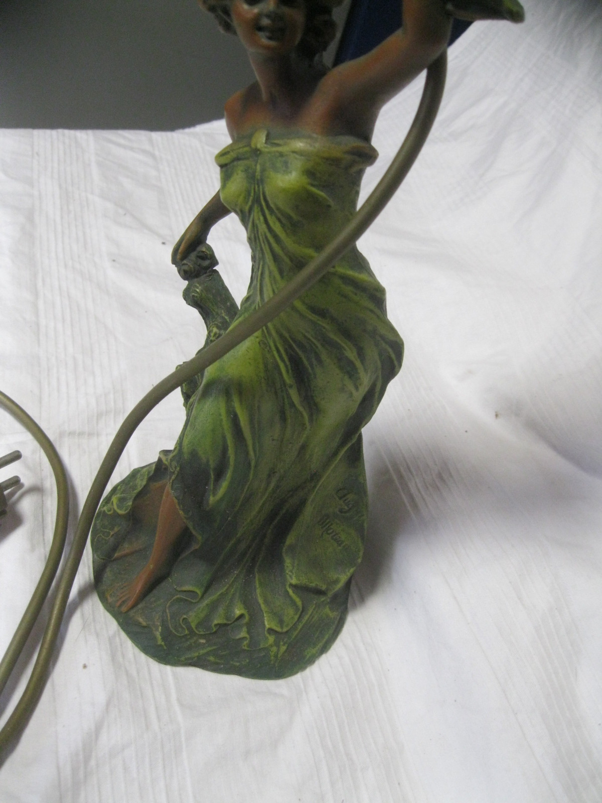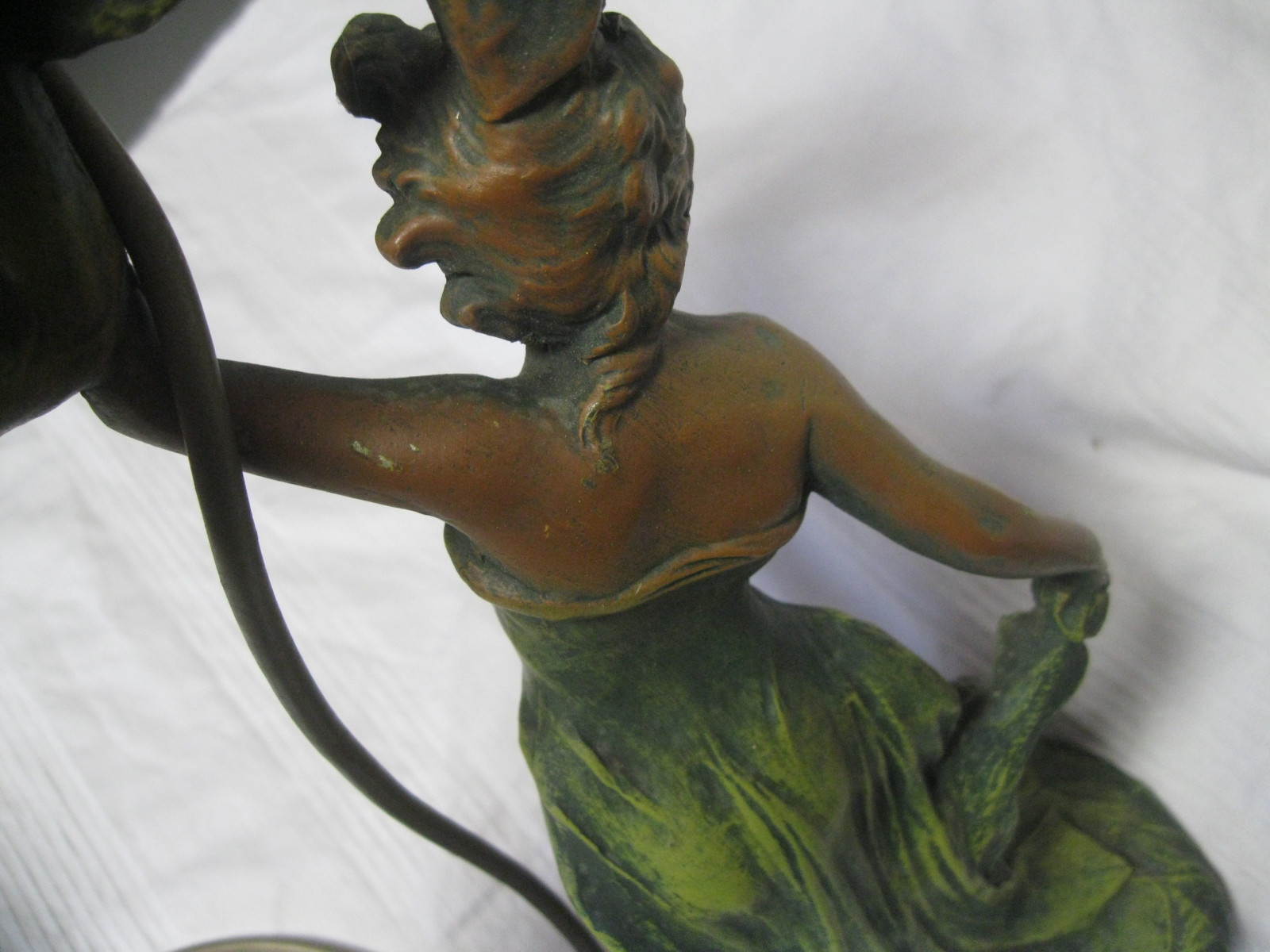 Tolle 2-flammigeTischlampe aus Bronzeguss, schön coloriert.