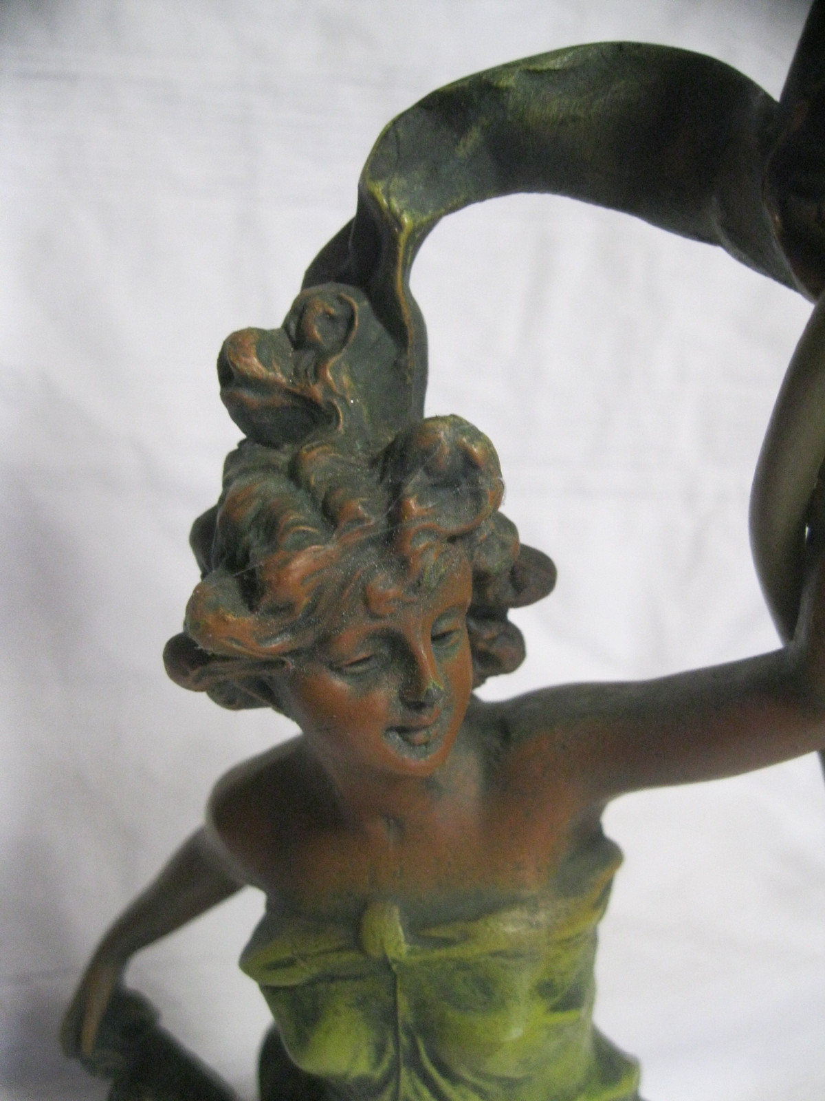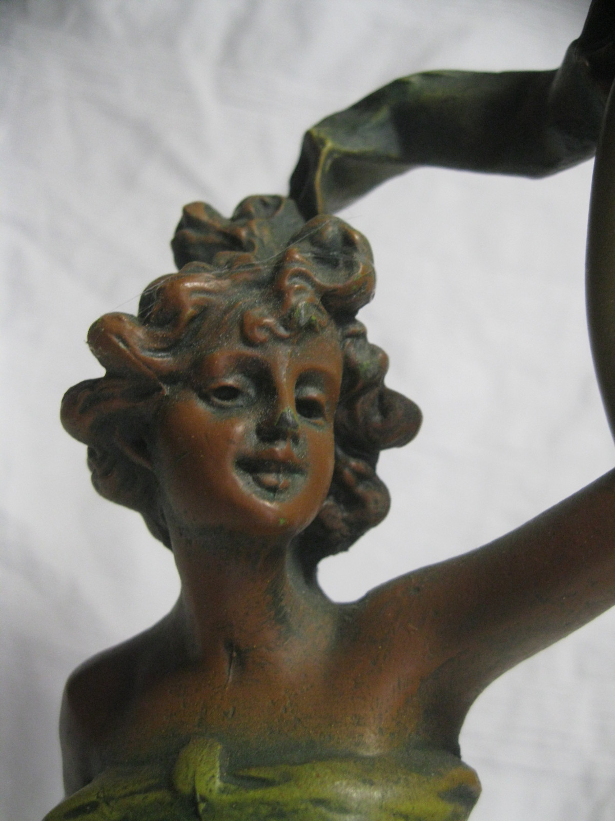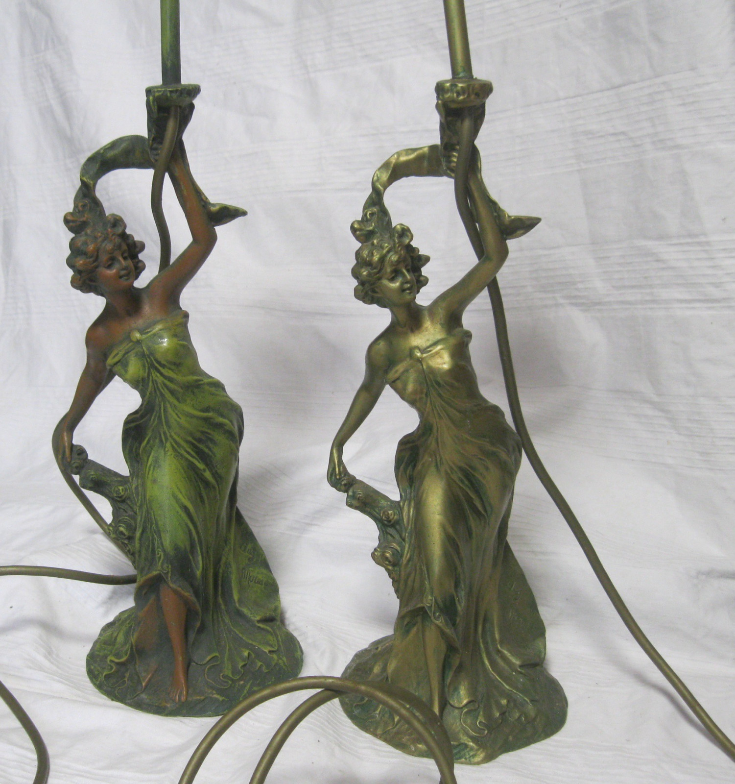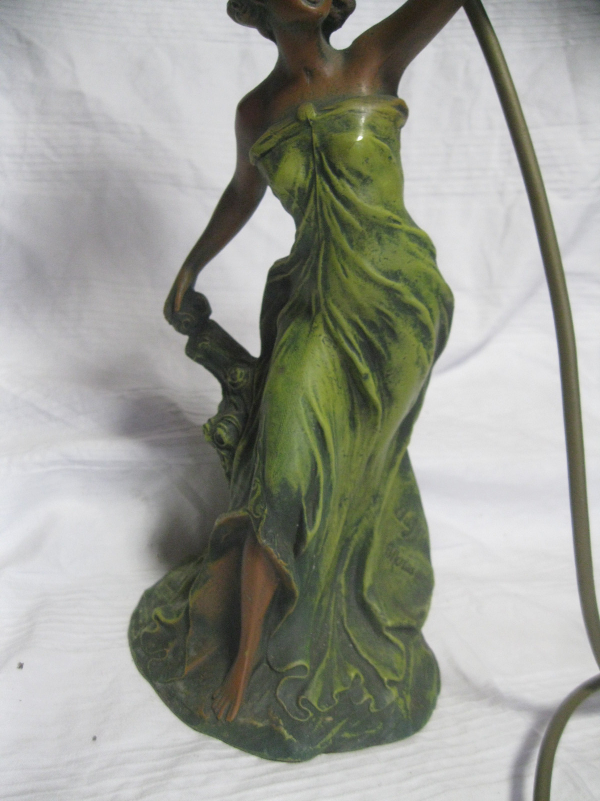 Tolle 2-flammigeTischlampe aus Bronzeguss, schön coloriert.