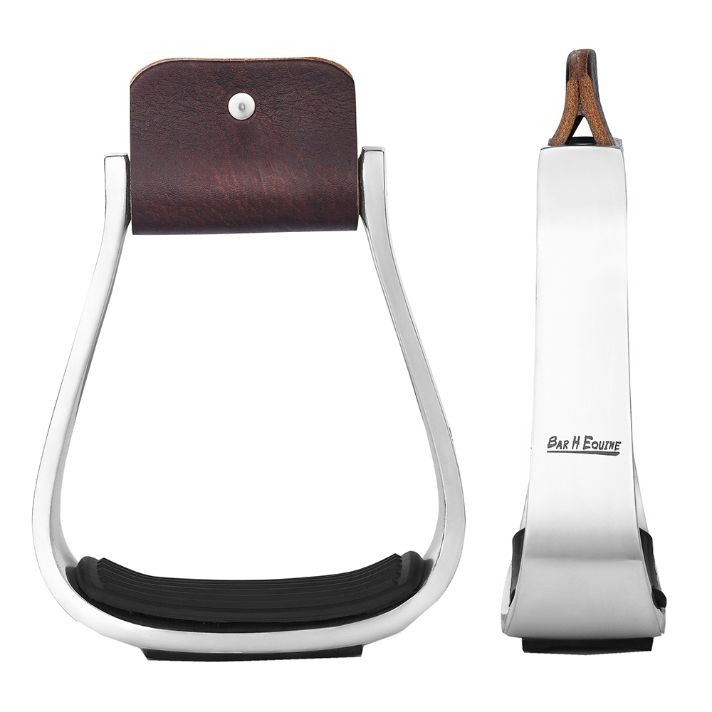 Ride In Style And Comfort With These Premium Aluminum Western Stirrups From H Equine. Designed For Durability And Rider Comfort, They Feature A 2" Tread For A Secure, Responsive Feel And A Neck To Keep The Stirrups In Proper Alignment. The Sloped Footbed Reduces Ankle And Knee Strain, Making Them Ideal For Long Days In The Saddle. Finished With Genuine Leather Wrapping, They Offer Both Rugged Performance And Classic Western Charm.