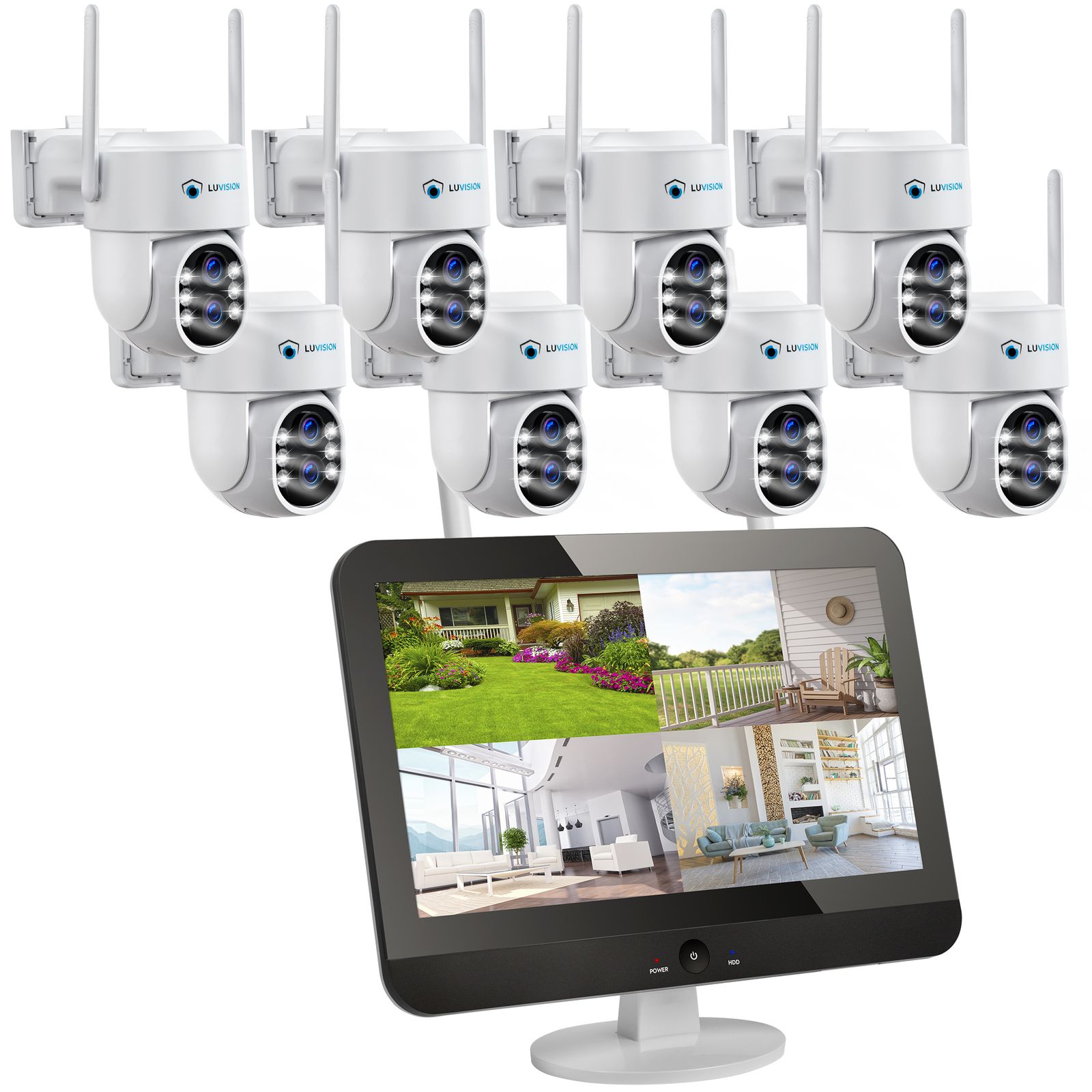 Hochauflösendes WLAN Überwachungssystem mit 10x Hybrid Zoom Objektiv Kameras für den Innen- und Außenbereich Dual WLAN 12,5" LED Monitor