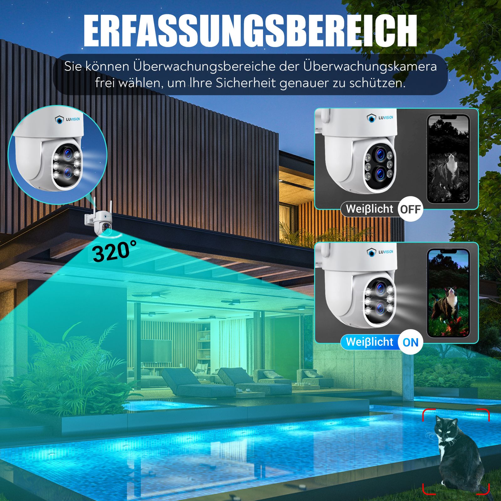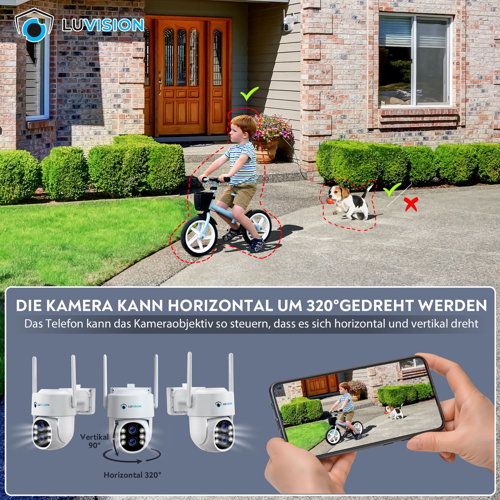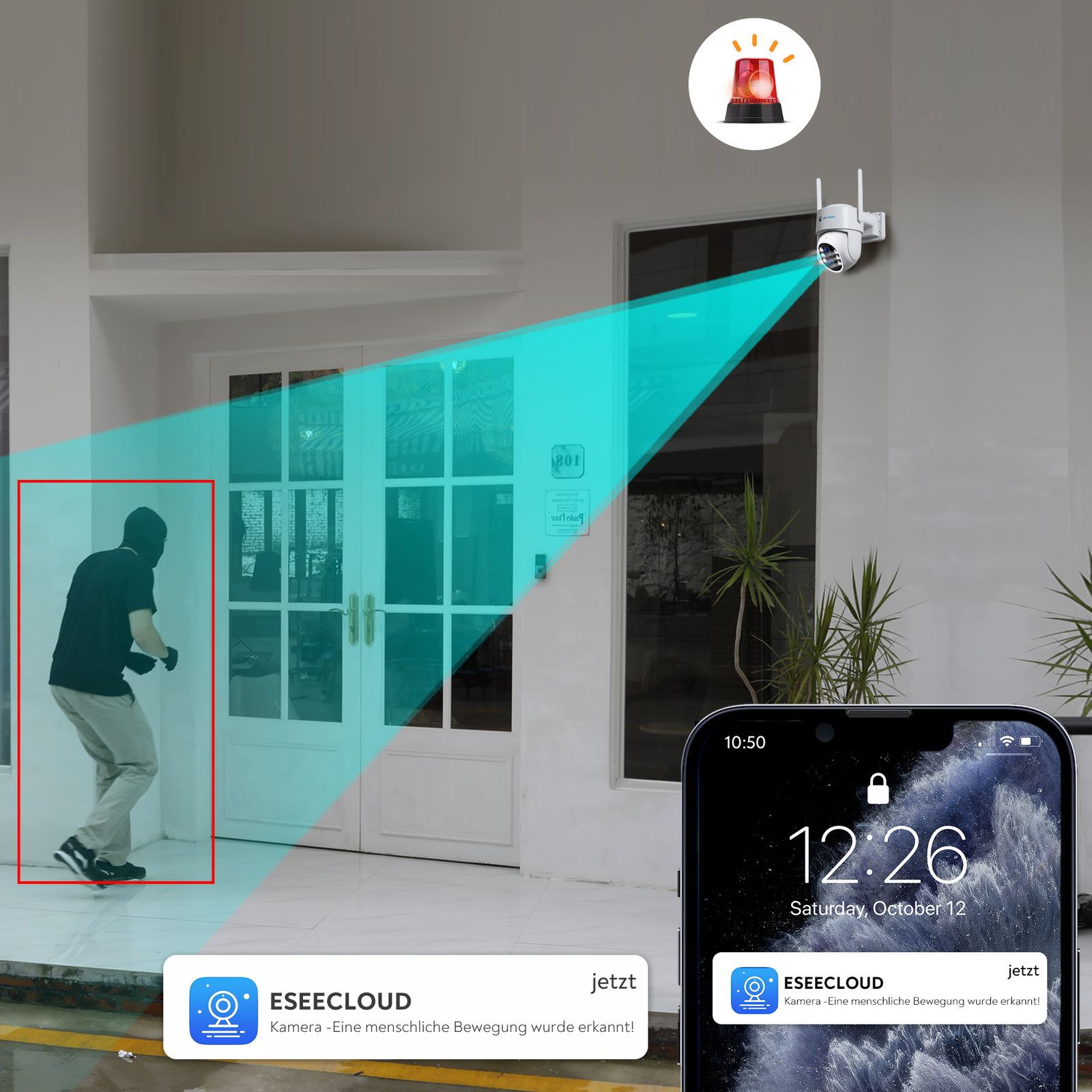 - DUAL WLAN IP Überwachungskamera verfügt über eine Sirene