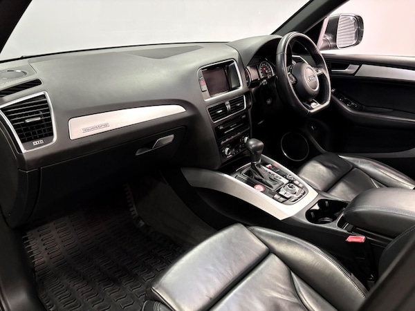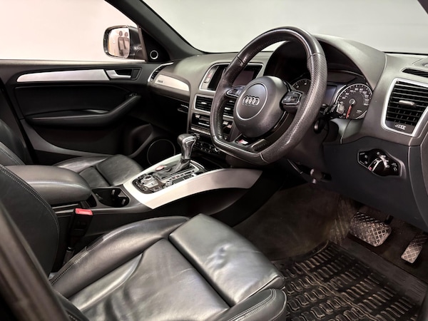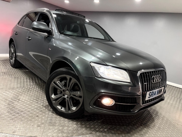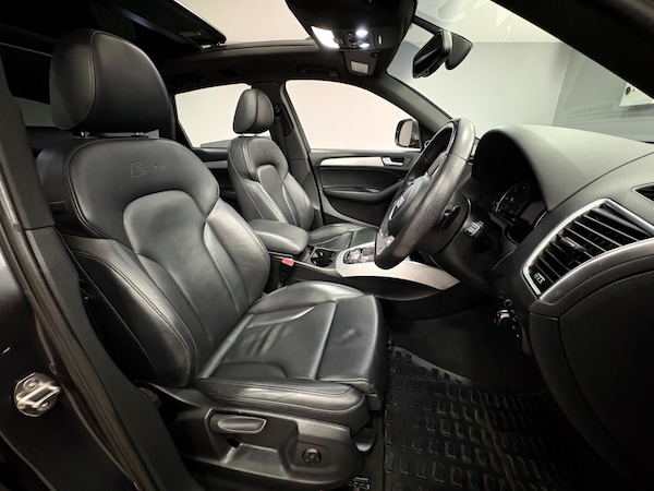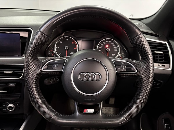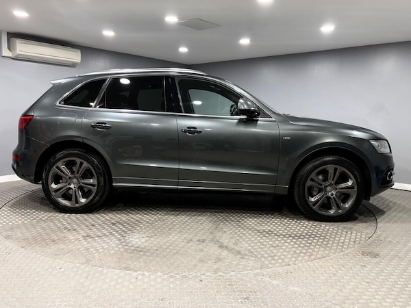Rare example of the Audi Q5 3.0TDI Quattro S-Line Plus Automatic finished in daytona grey with heated black leather trim. Vehicle supplied with 2 keys, MOT until December 2026 and recent service history. Features include 20 inch alloy wheels, towbar, electrically folding door mirrors, parking sensors with rear camera, bang and olufsen speakers, sliding panoramic glass sunroof, navigation, DAB radio, bluetooth, xenon headlights, auto boot release, climate and cruise control plus more.PART EXCHANGE WELCOME, FINANCE AVAILBALE
